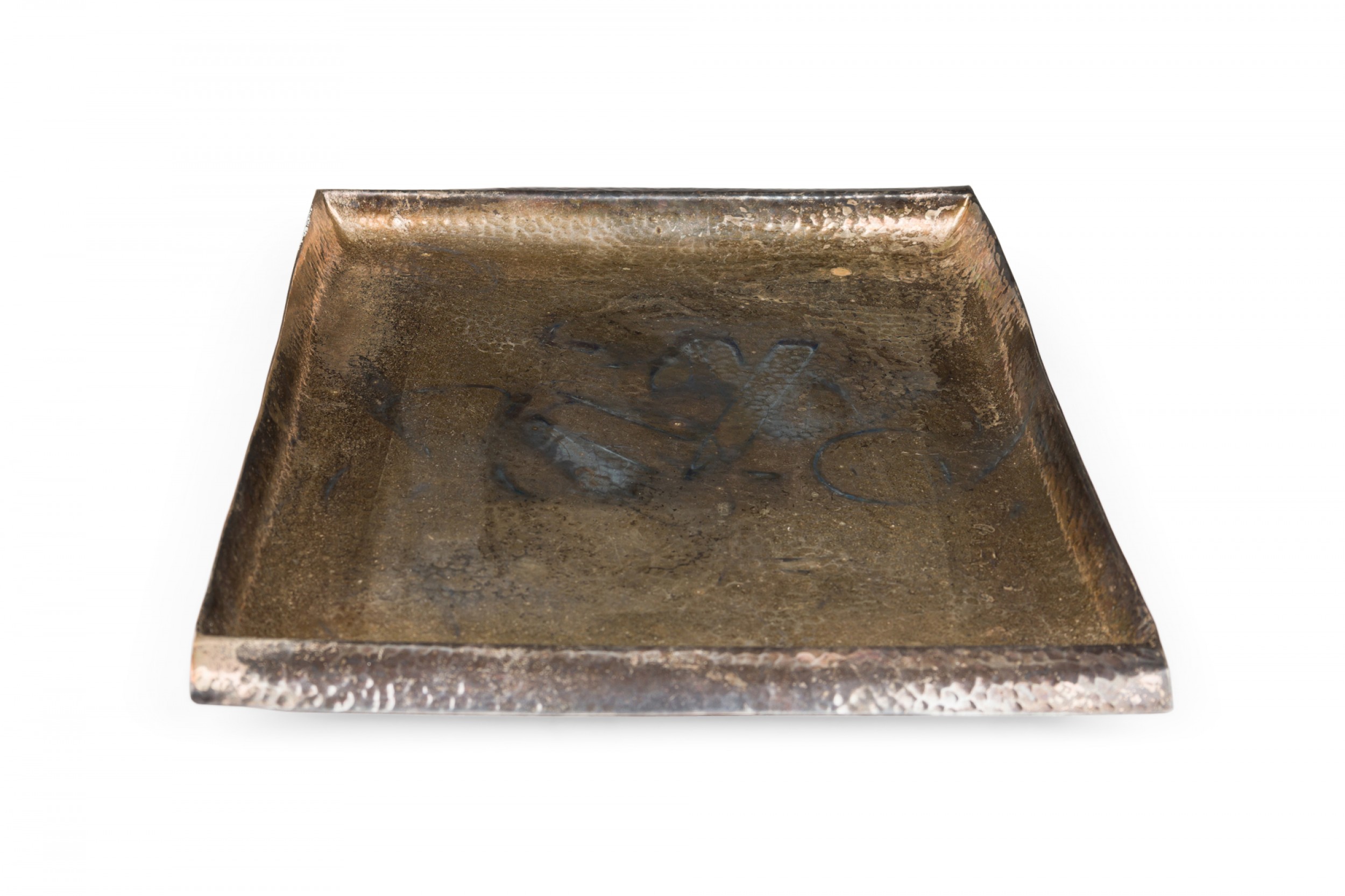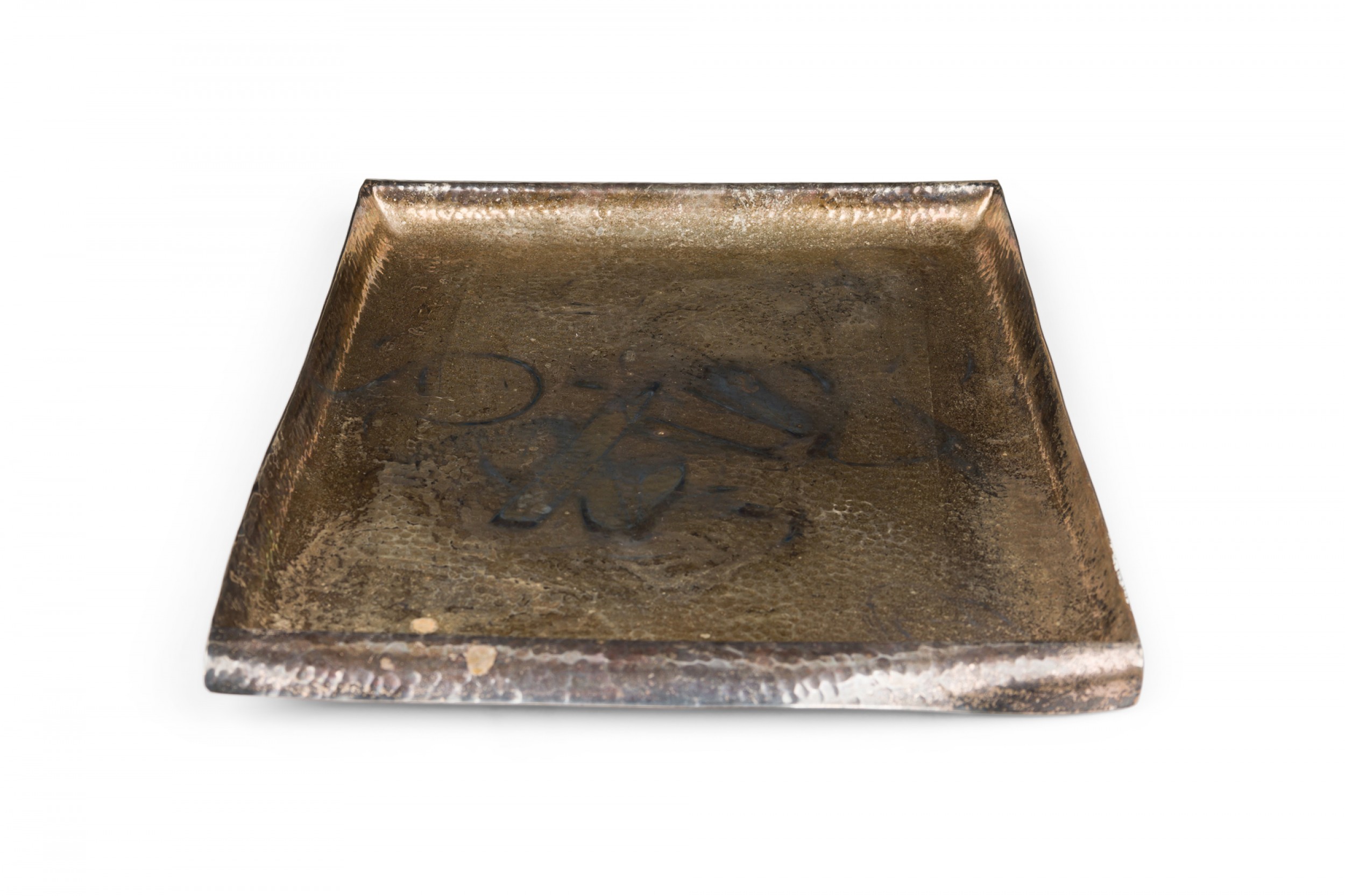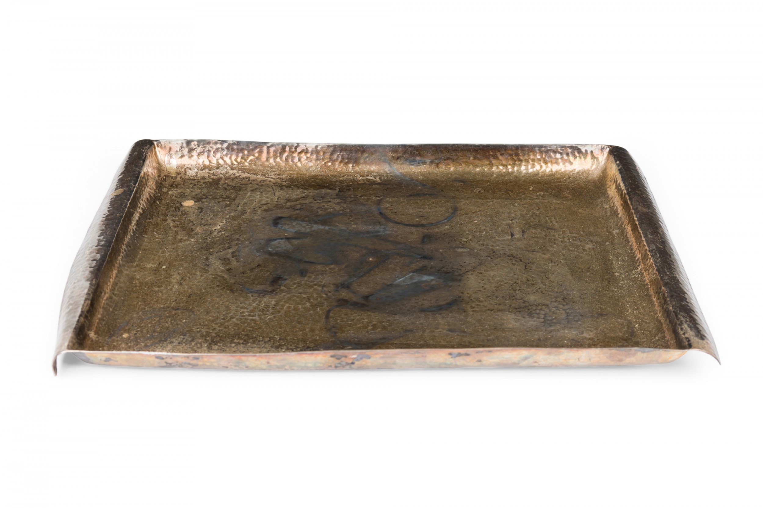 American Victorian style hammered metal butlers serving tray with naturally formed patina