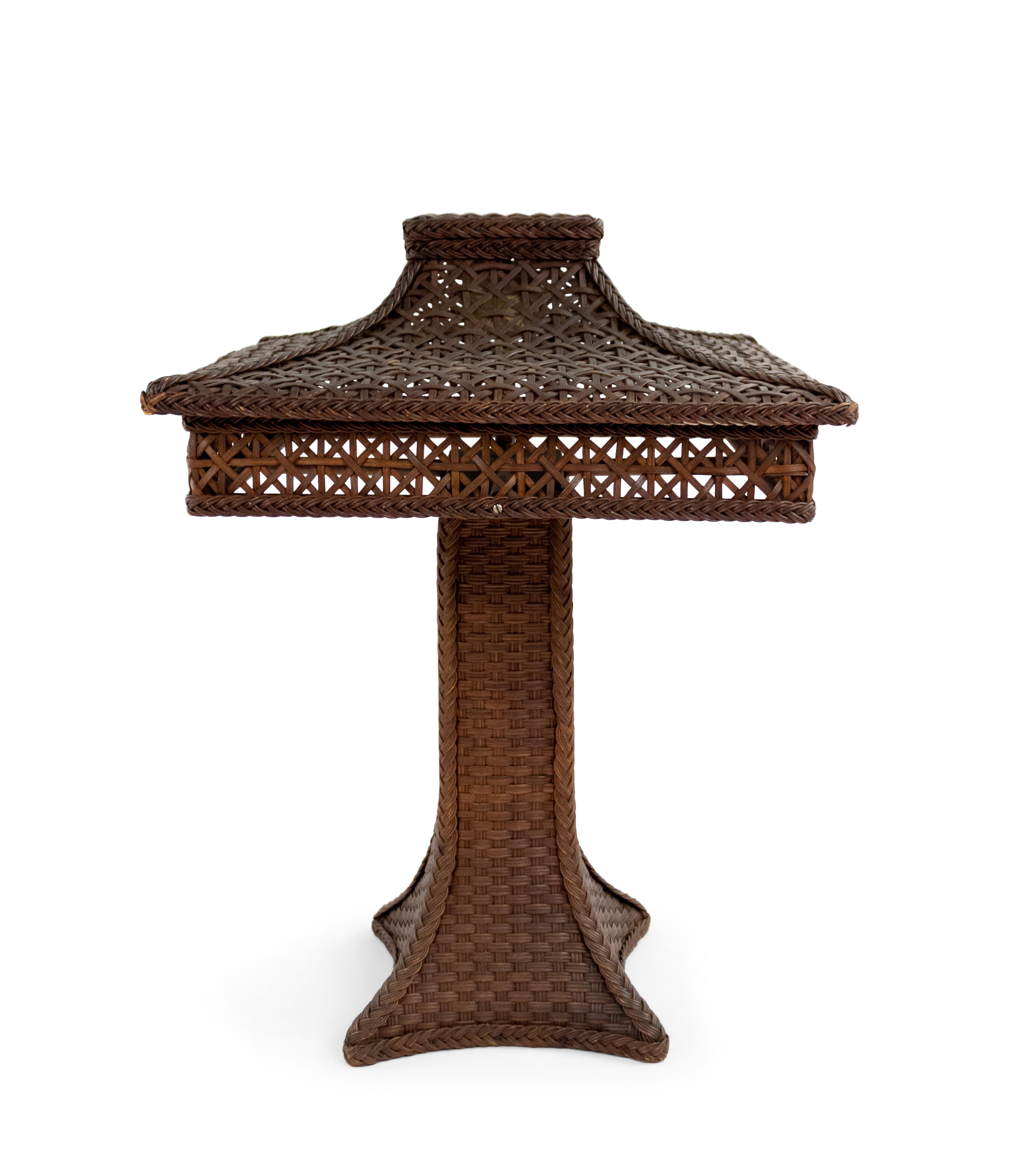 Style: Wicker Materials & Techniques: Natural, wicker, wood, woven Category: Lighting, Wicker Good; Wear consistent with age and use