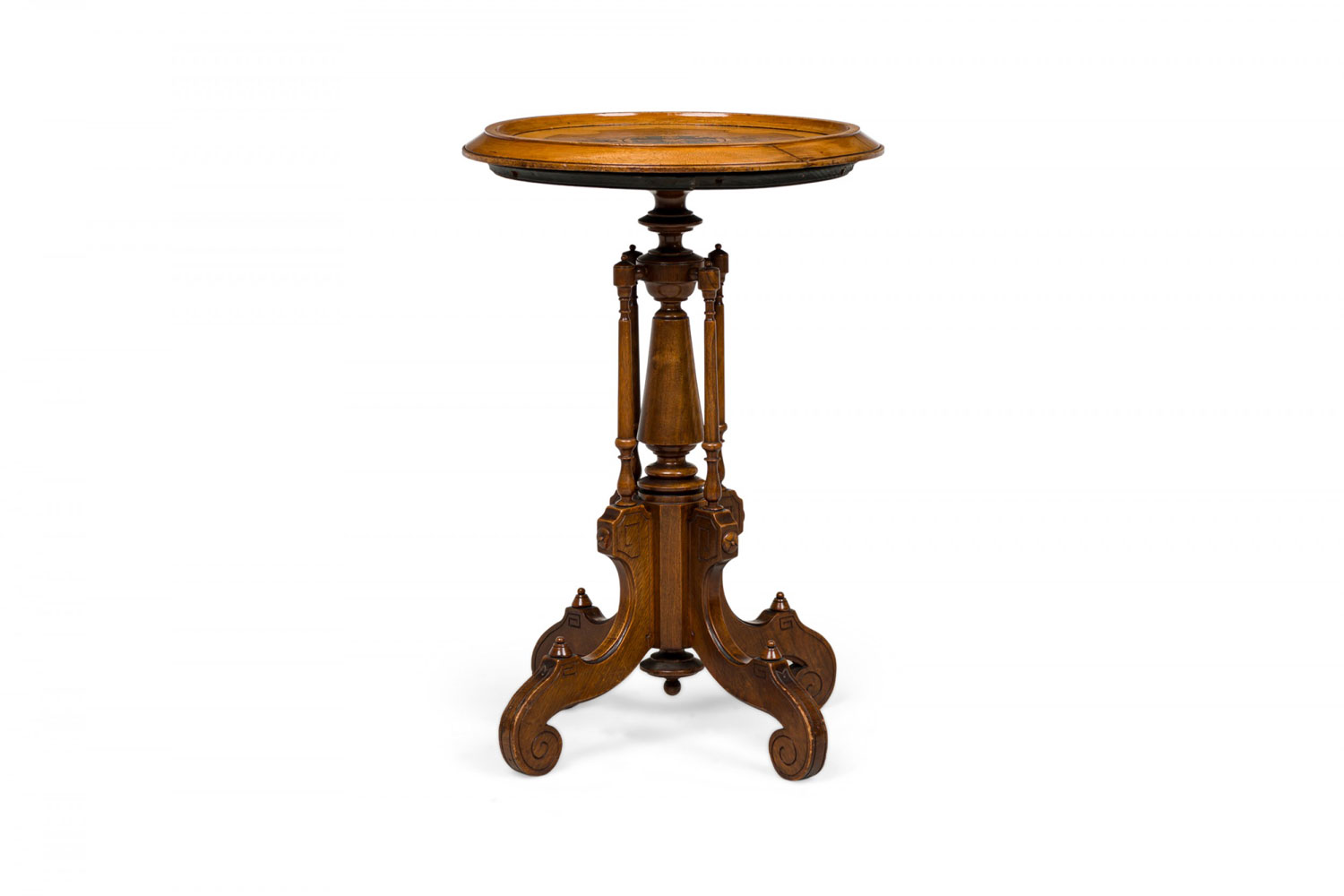 American Victorian Inlaid Circular Carved Wooden Plant Stand / Side Table
