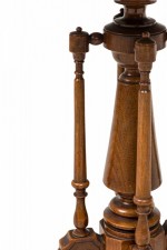 Style: American Materials & Techniques: Carved, inlaid, turned, wood Category: Tables Condition: Wear to finish. Good; Minor losses