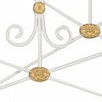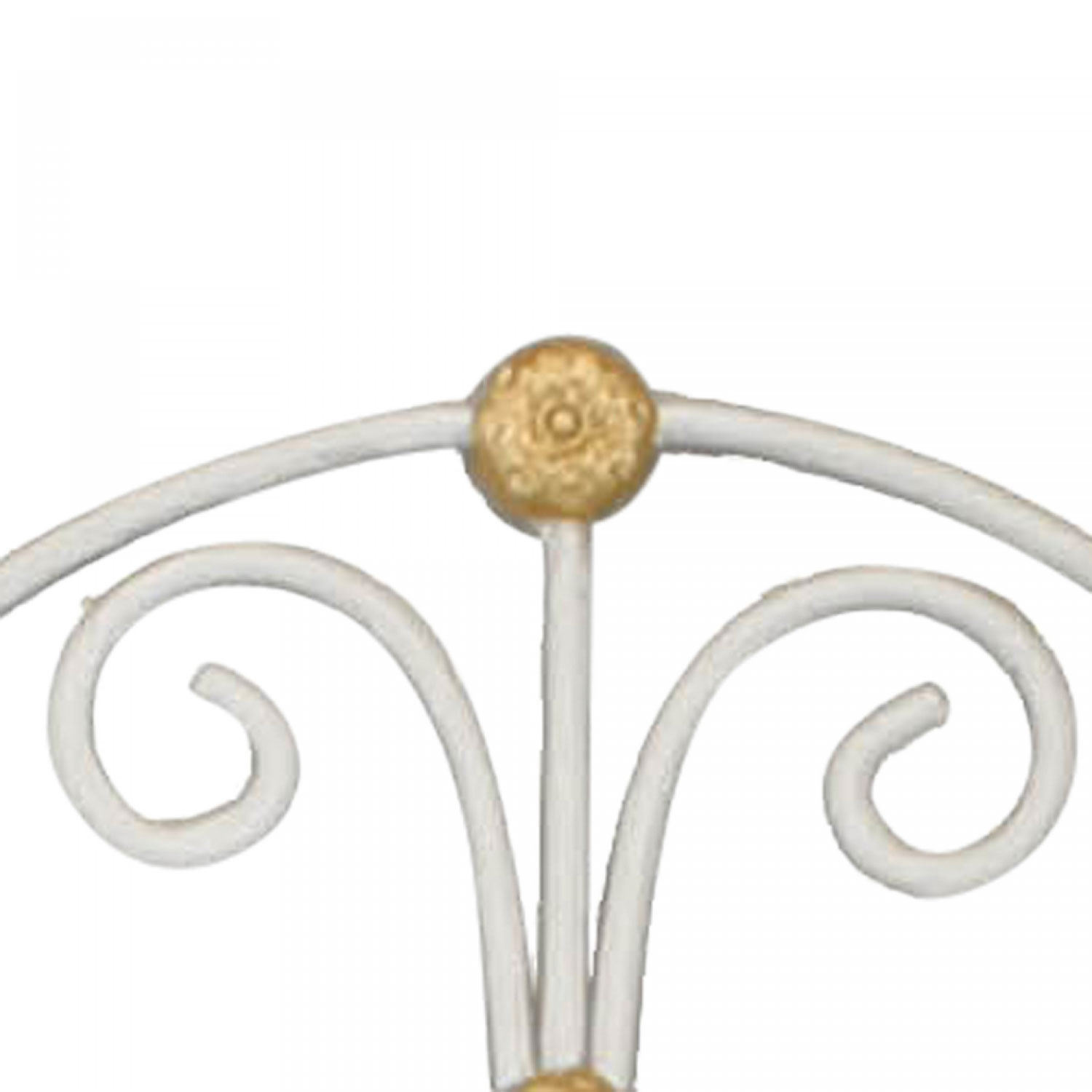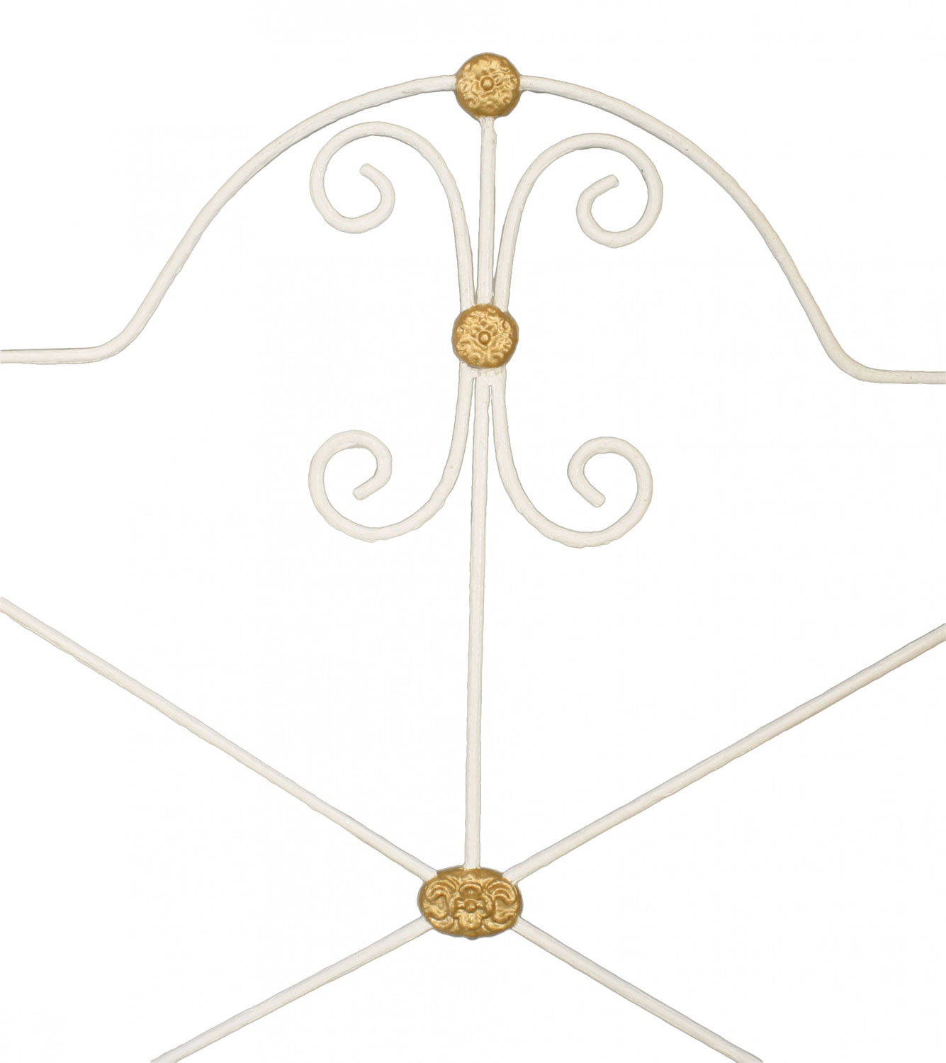Style: American Materials & Techniques: Brass, iron, iron / wrought iron Category: Bedroom Condition: Brass finial on one post of footboard is missing.