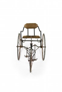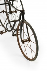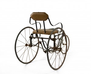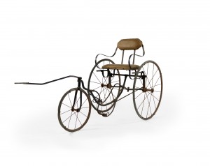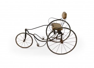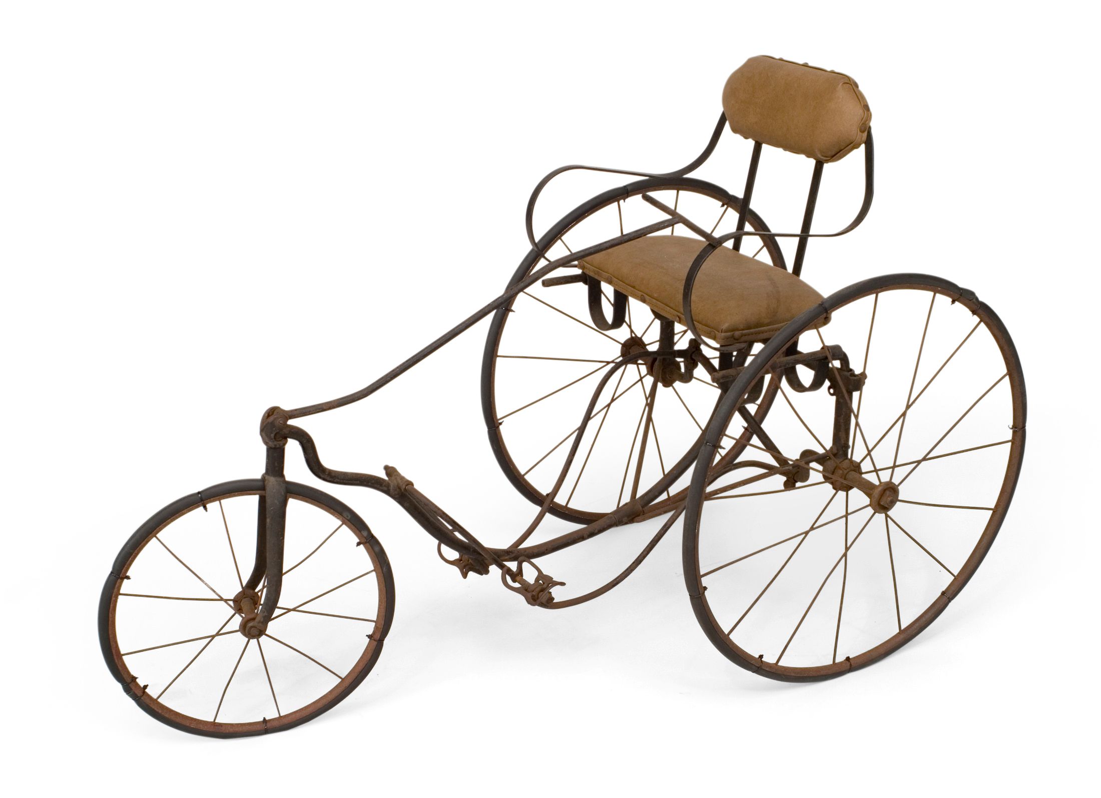 American Victorian iron tricycle with a carriage seat (tag: GENDRON WHEEL CO., TOLEDO, OH).