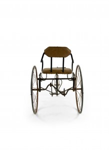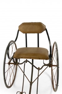 American Victorian iron tricycle with a carriage seat (tag: GENDRON WHEEL CO., TOLEDO, OH)