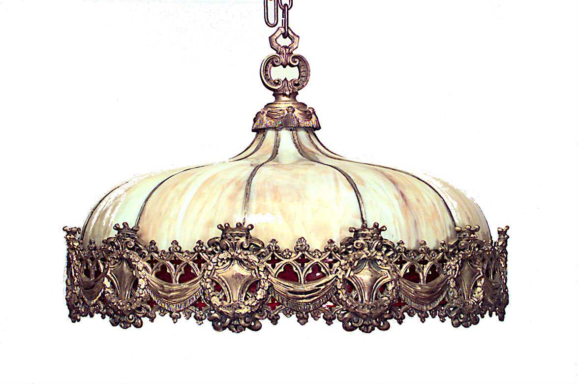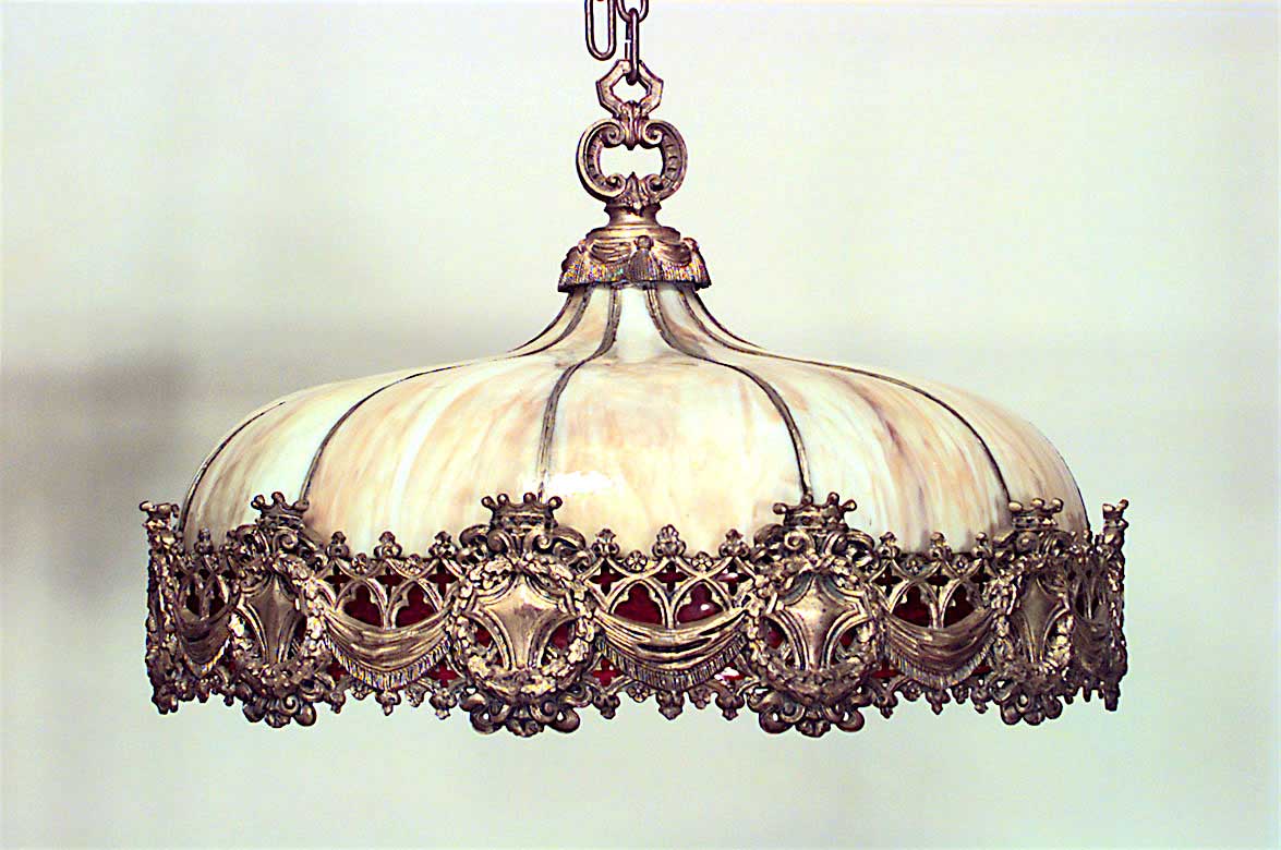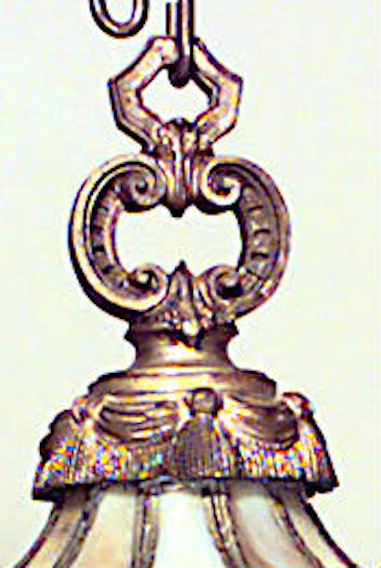 American Victorian Leaded Glass and Bronze Chandelier