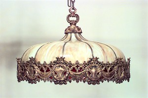 Style: American Materials & Techniques: Bronze, glass Category: Lighting Good; Wear consistent with age and use