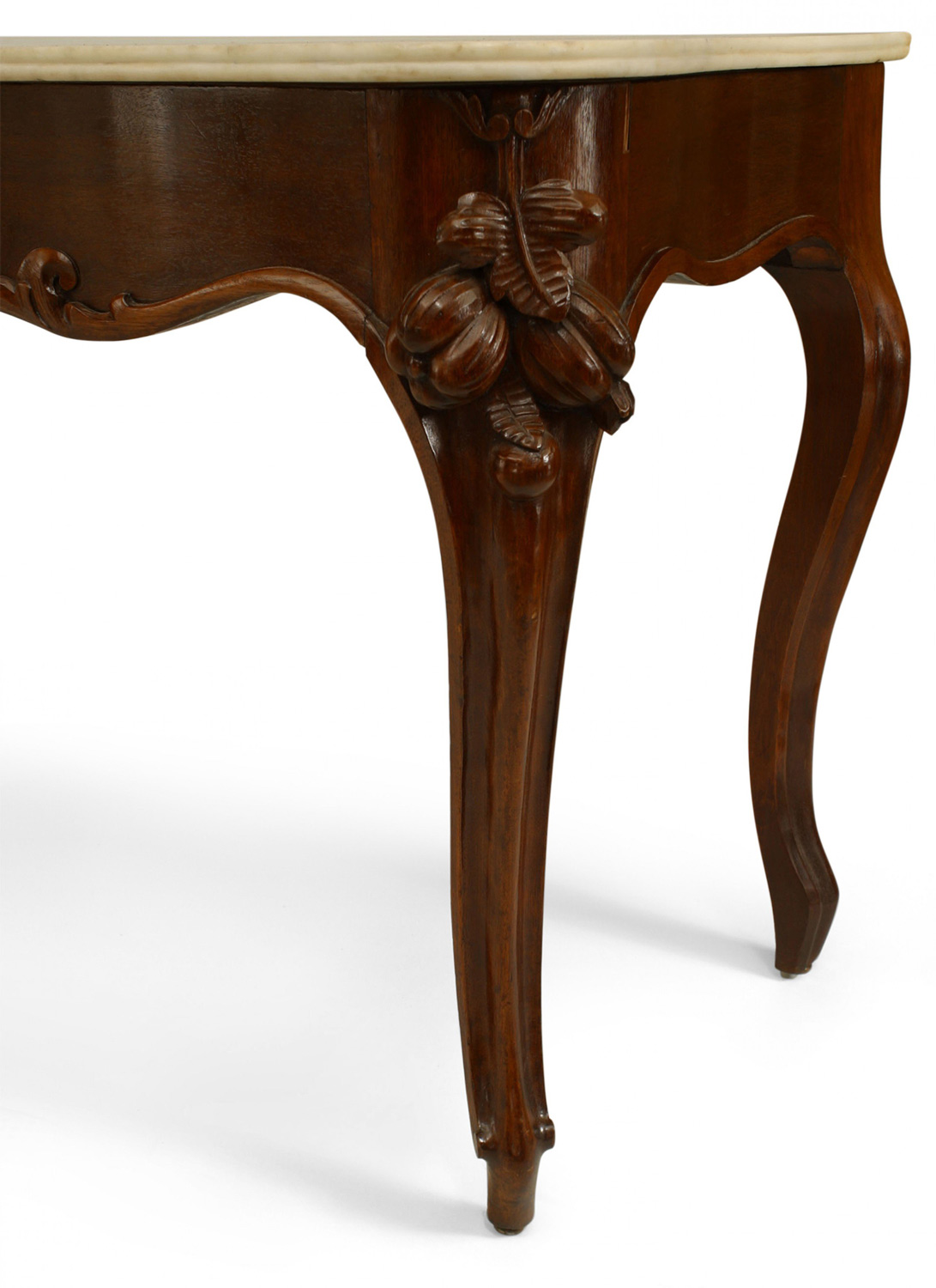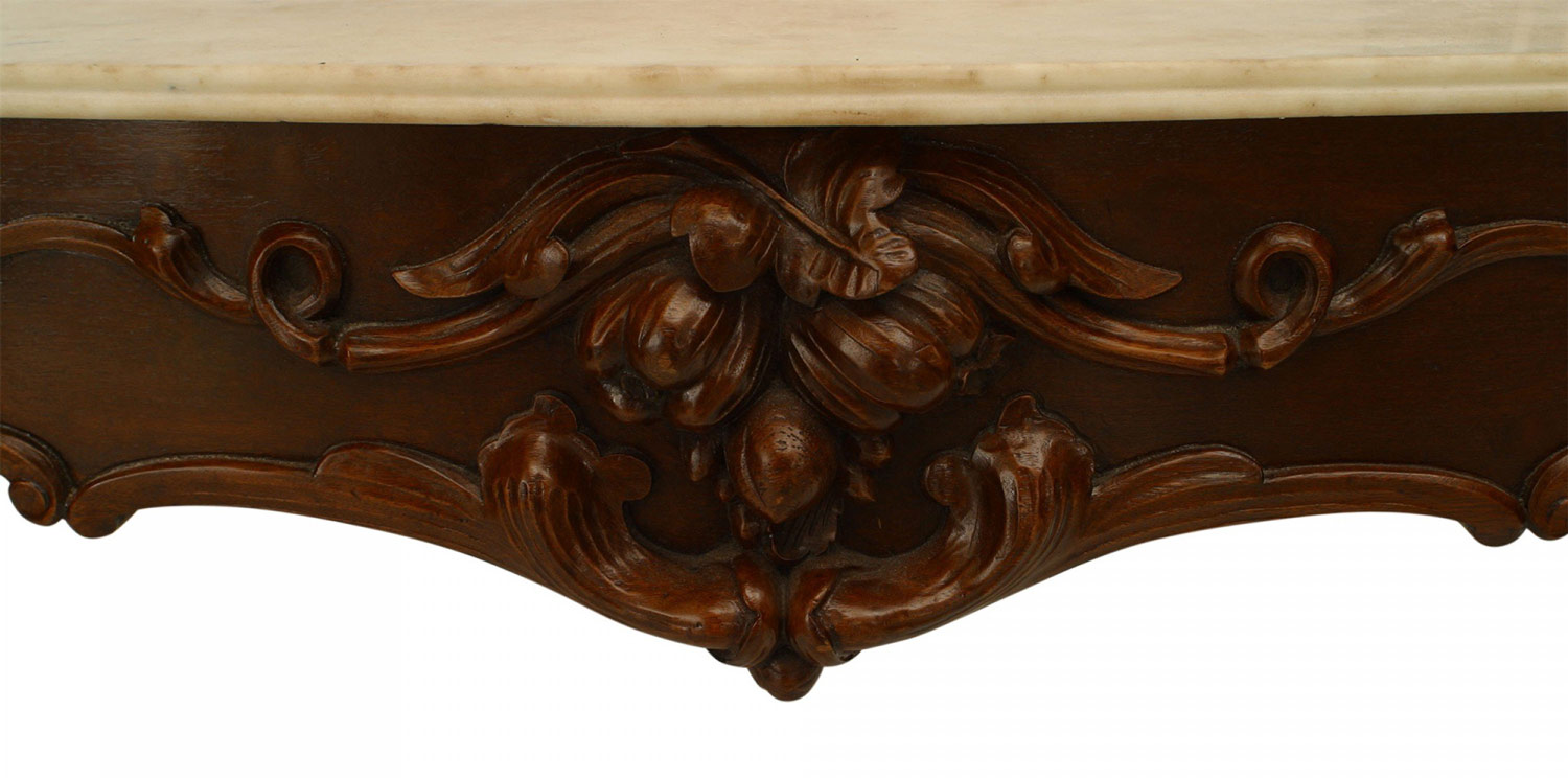 PAIR of American Victorian mahogany serpentine front console tables with white marble top (PRICED AS PAIR).