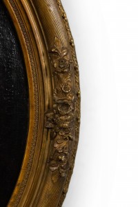 American Victorian gilt framed oval oil portrait painting of man with black tie