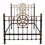 American Victorian black painted full size bed with brass wheel design (includes: headboard, footboard, rails)..