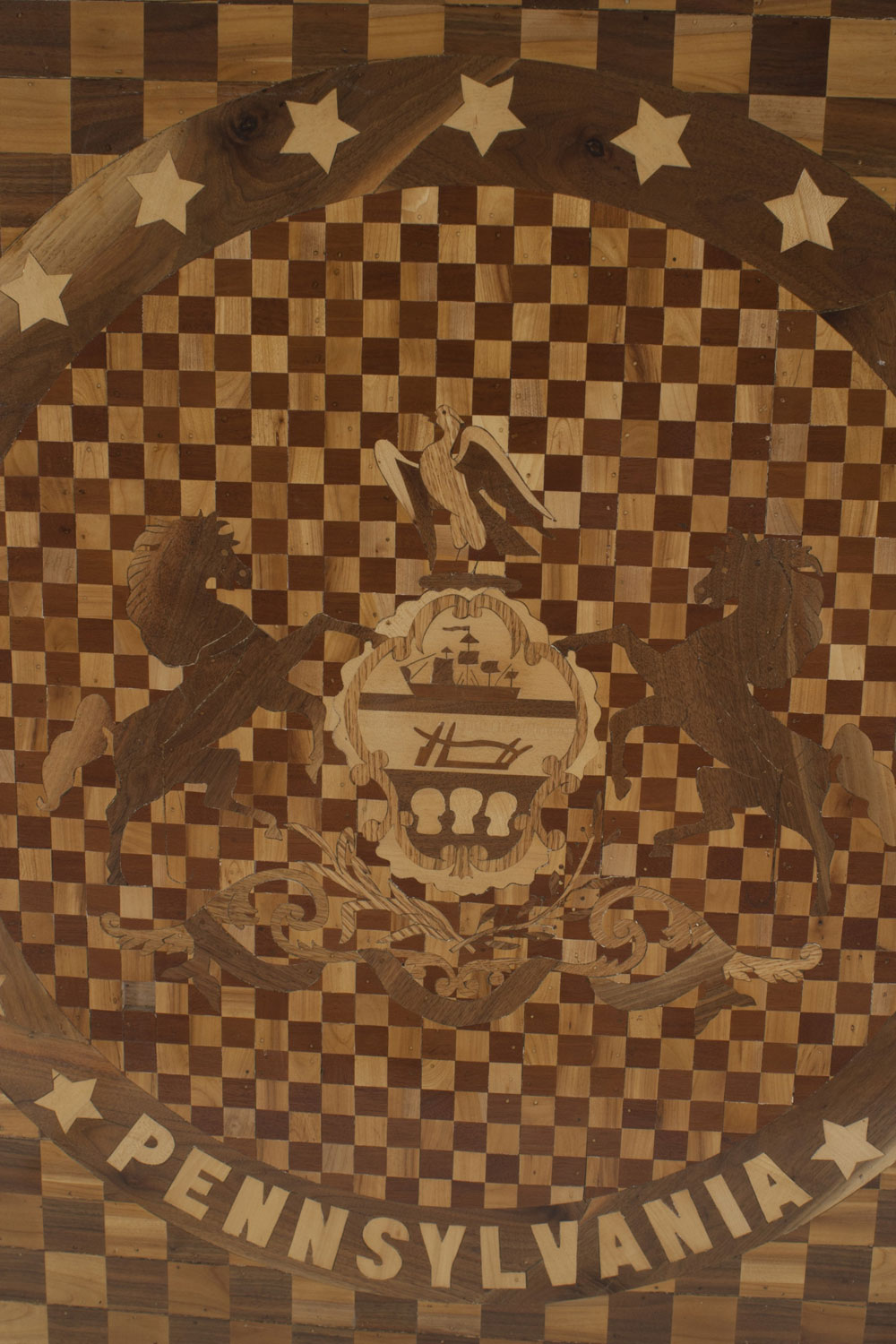 American Victorian (19th Century) large inlaid panel showing the seal of Pennsylvania from the flooring of the central rotunda of the California State Capital in Sacramento (Related items: REG3884 Seal of the United States, REG3884A-Seal of California).