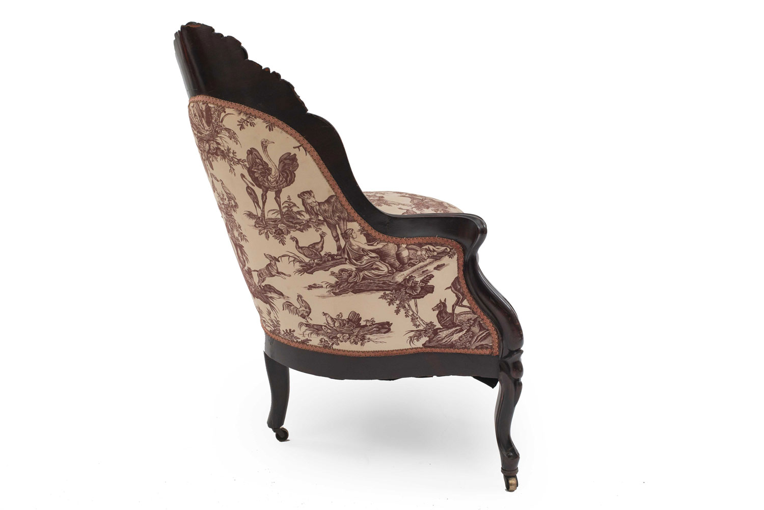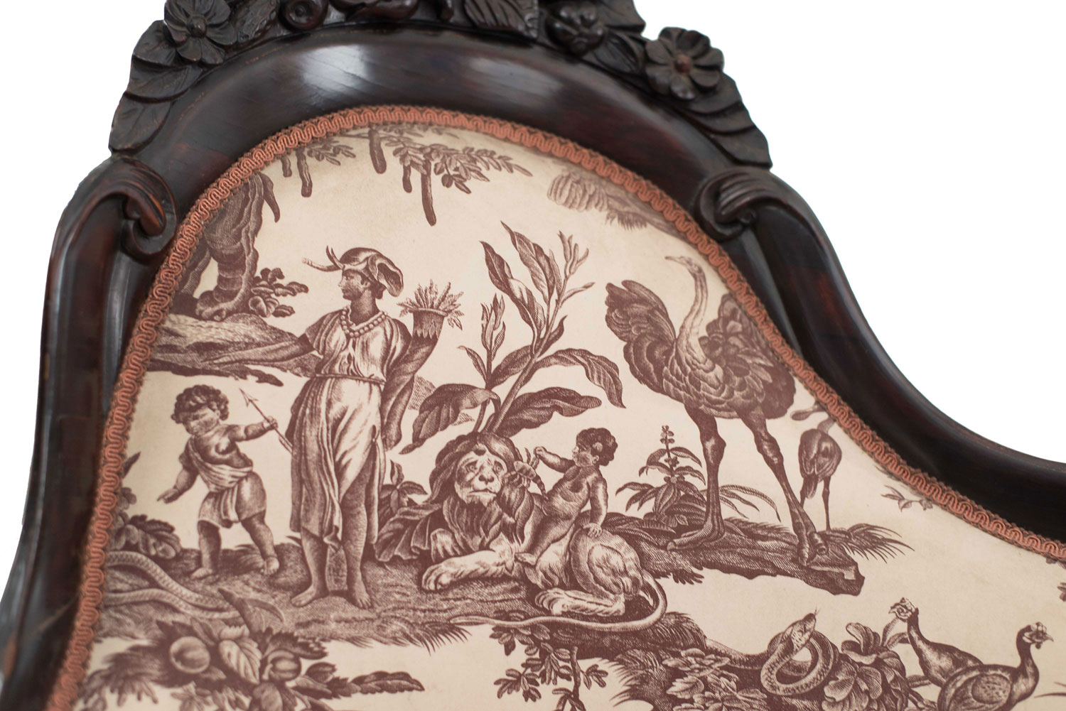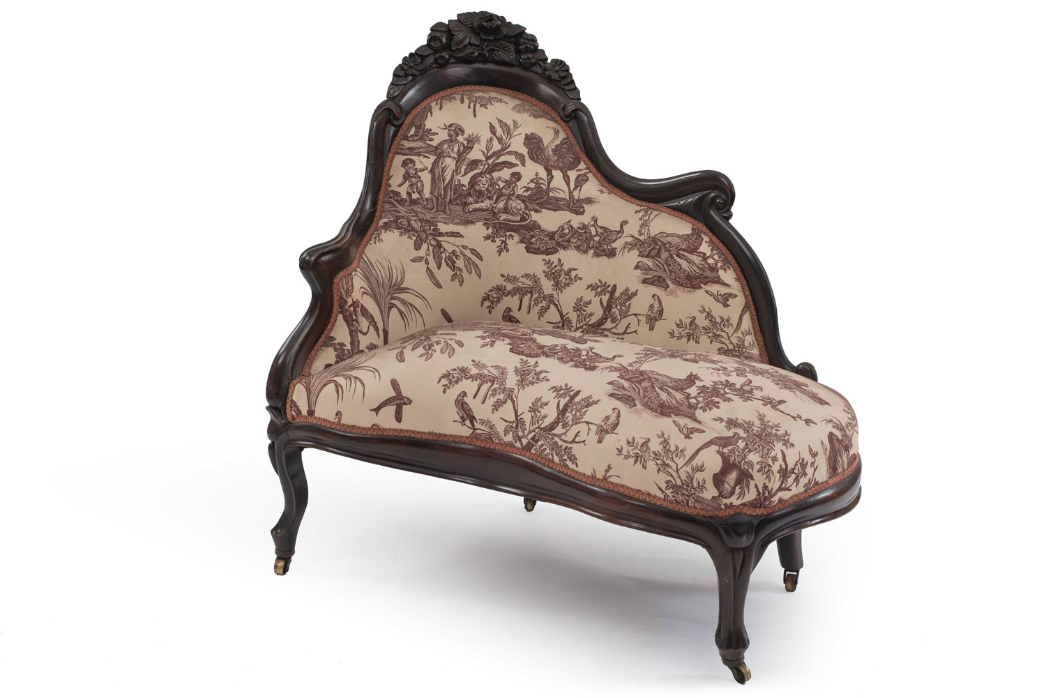 American Victorian rosewood recamier with brown and white upholstery (Attributed to JOHN HENRY BELTER)