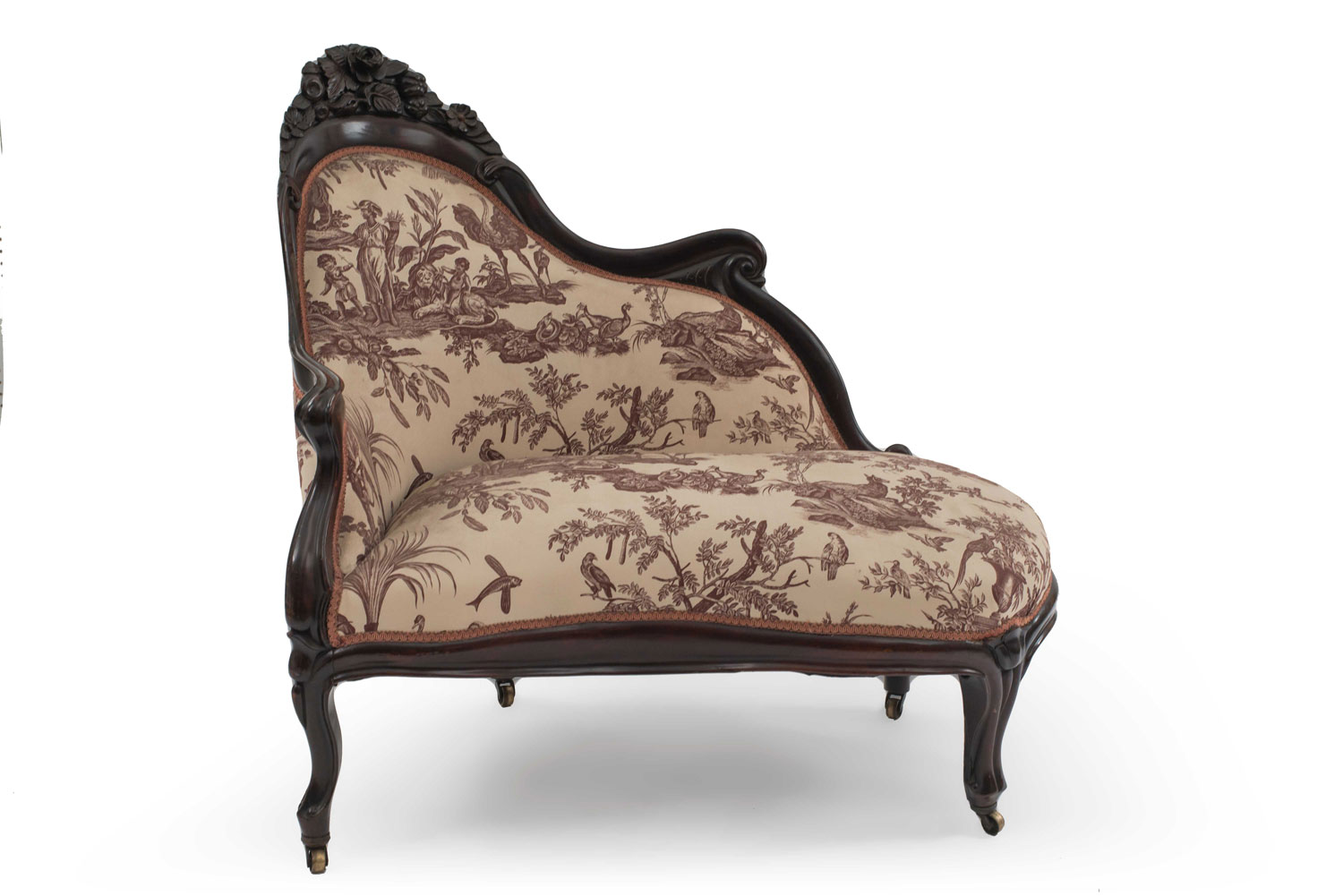 American Victorian rosewood recamier with brown and white upholstery (Attributed to JOHN HENRY BELTER).