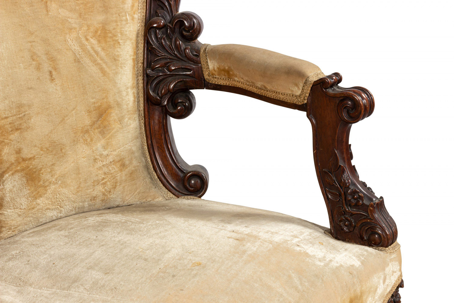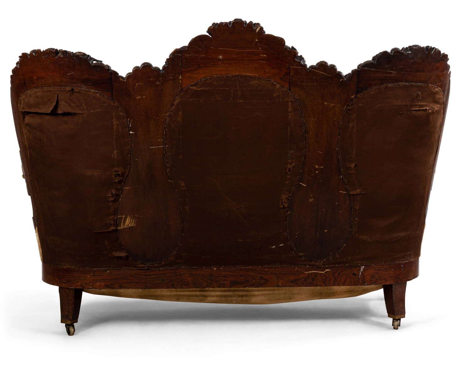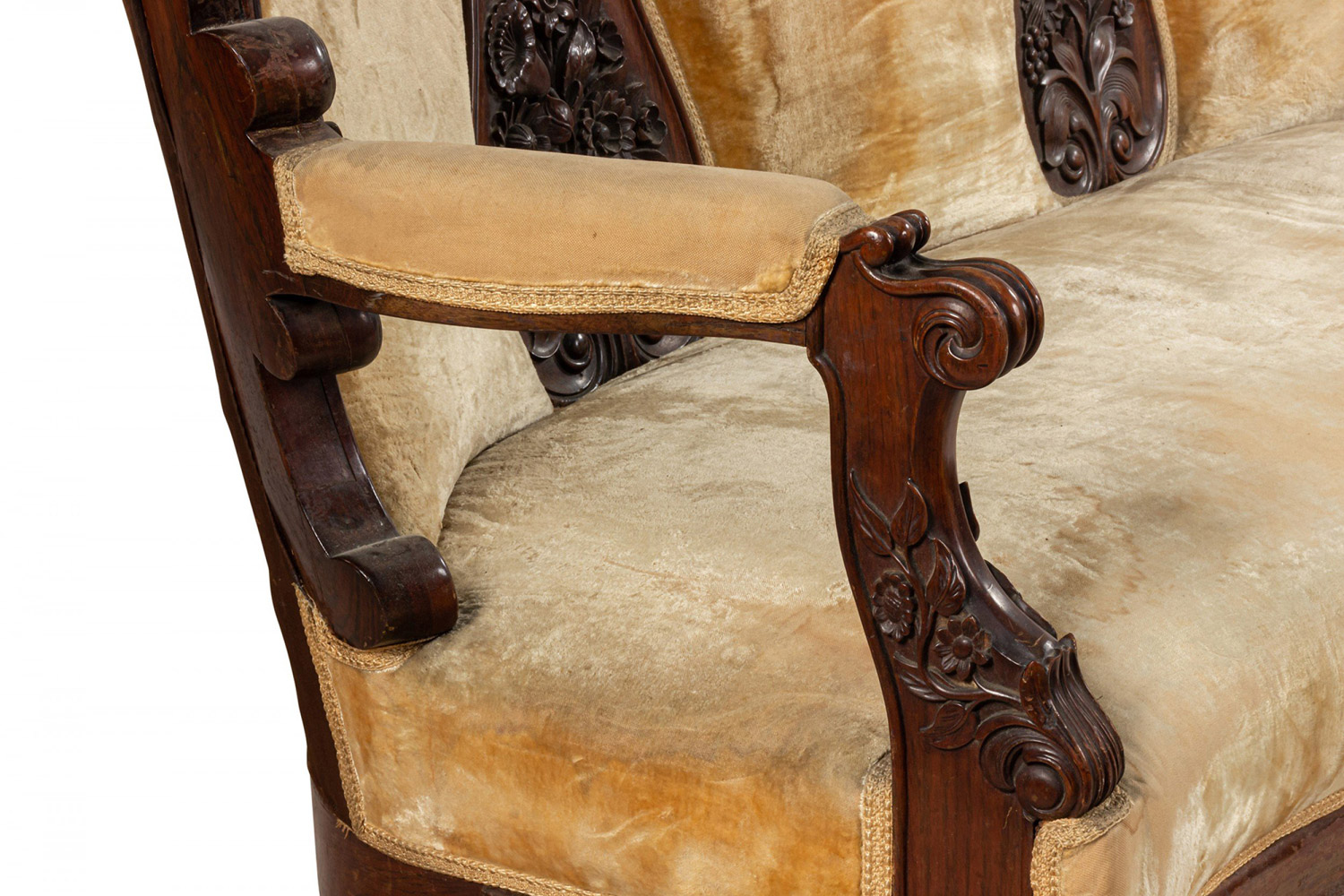 Style: American Materials & Techniques: Wood, rosewood, carved Category: Seating Condition: Minor stains to upholstery. Seat structure in antique condition.