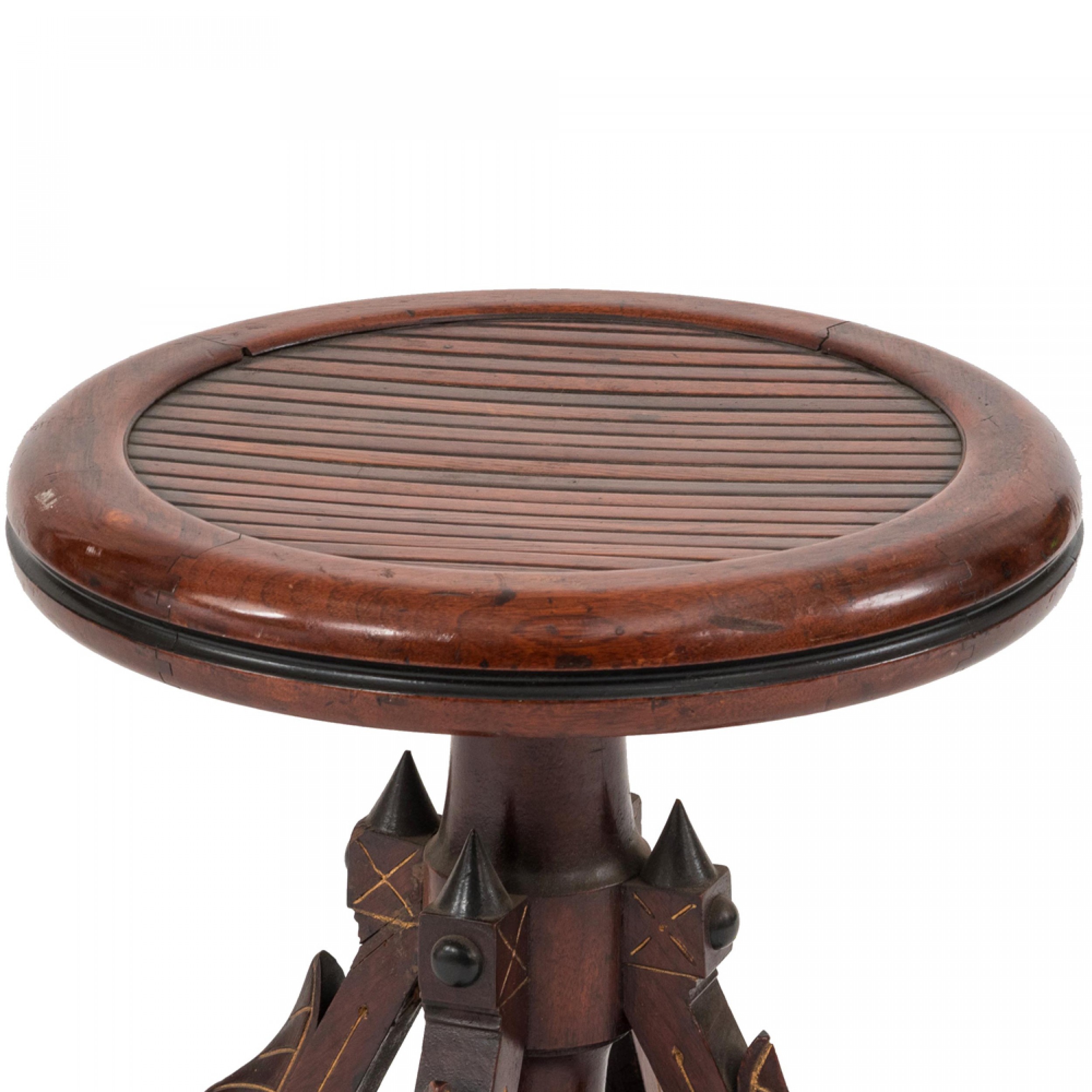 American Victorian Eastlake style (circa 1865) rosewood swivel stool with round slat top and ebonized and gilt trim..