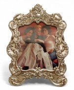 American Victorian small sterling silver easel picture frame with scroll design with brown velvet backing (marked GORHAM STERLING 321).