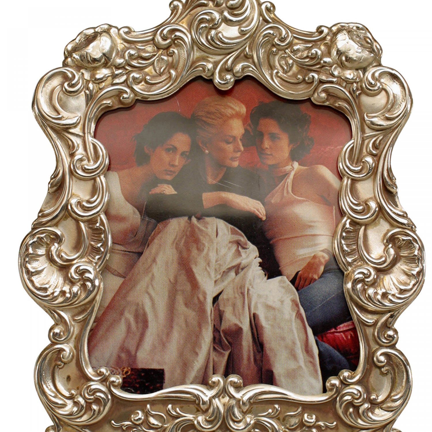 American Victorian small sterling silver easel picture frame with scroll design with brown velvet backing (marked GORHAM STERLING 321)