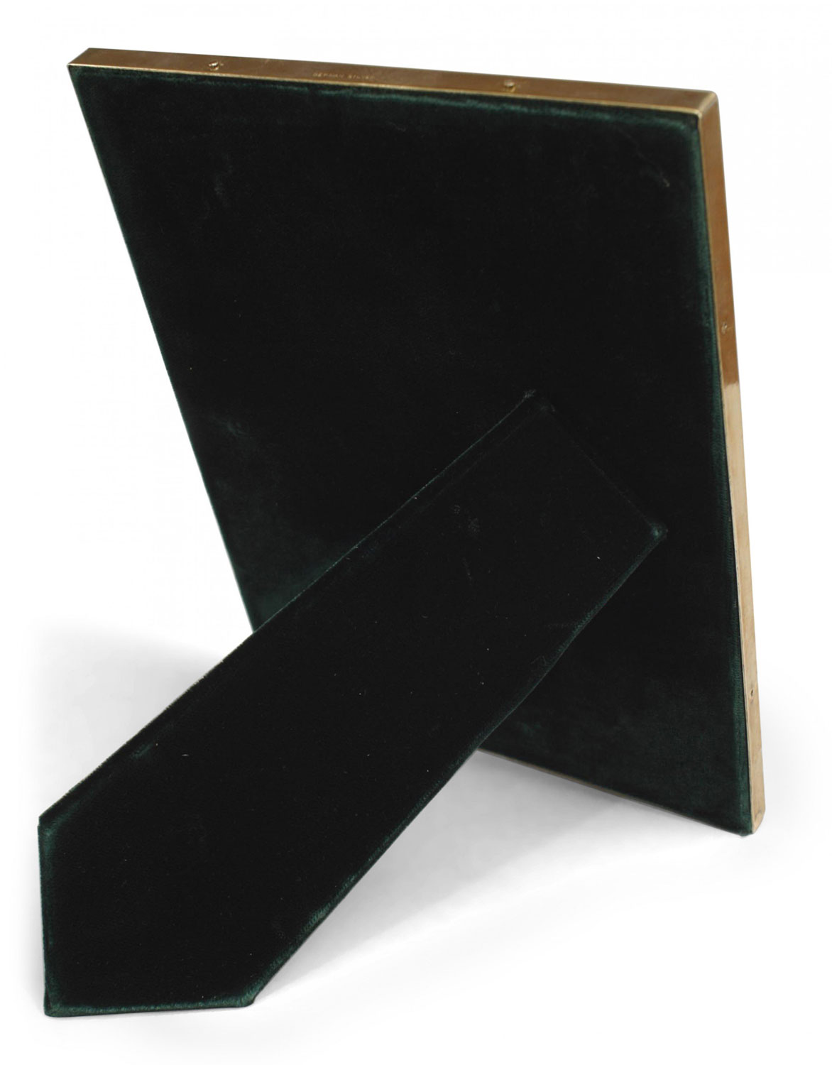 American Victorian-style sterling silver rectangular easel picture frame with etched floral and scroll design and bevelled glass with dark green velvet backing (marked: GERMAN SILVER).