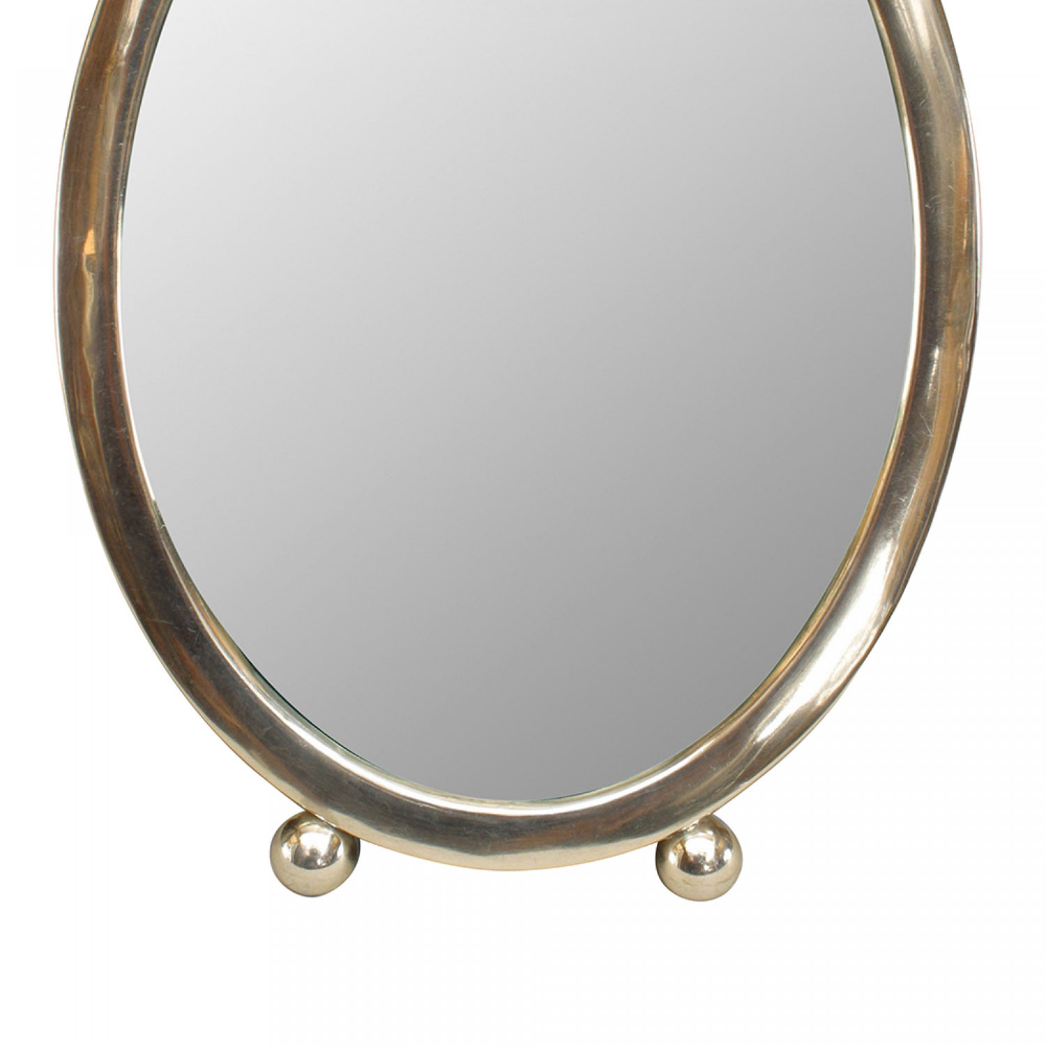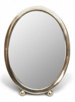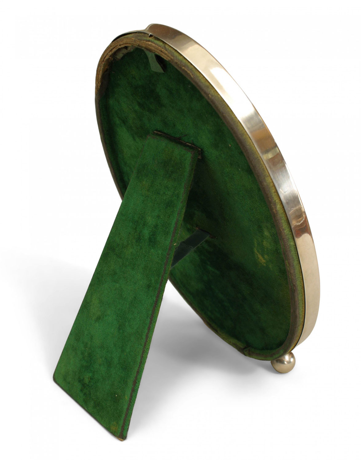 American Victorian-style oval shaped sterling silver easel picture frame raised on 2 ball feet with green velvet backing.