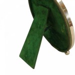 American Victorian-style oval shaped sterling silver easel picture frame raised on 2 ball feet with green velvet backing..