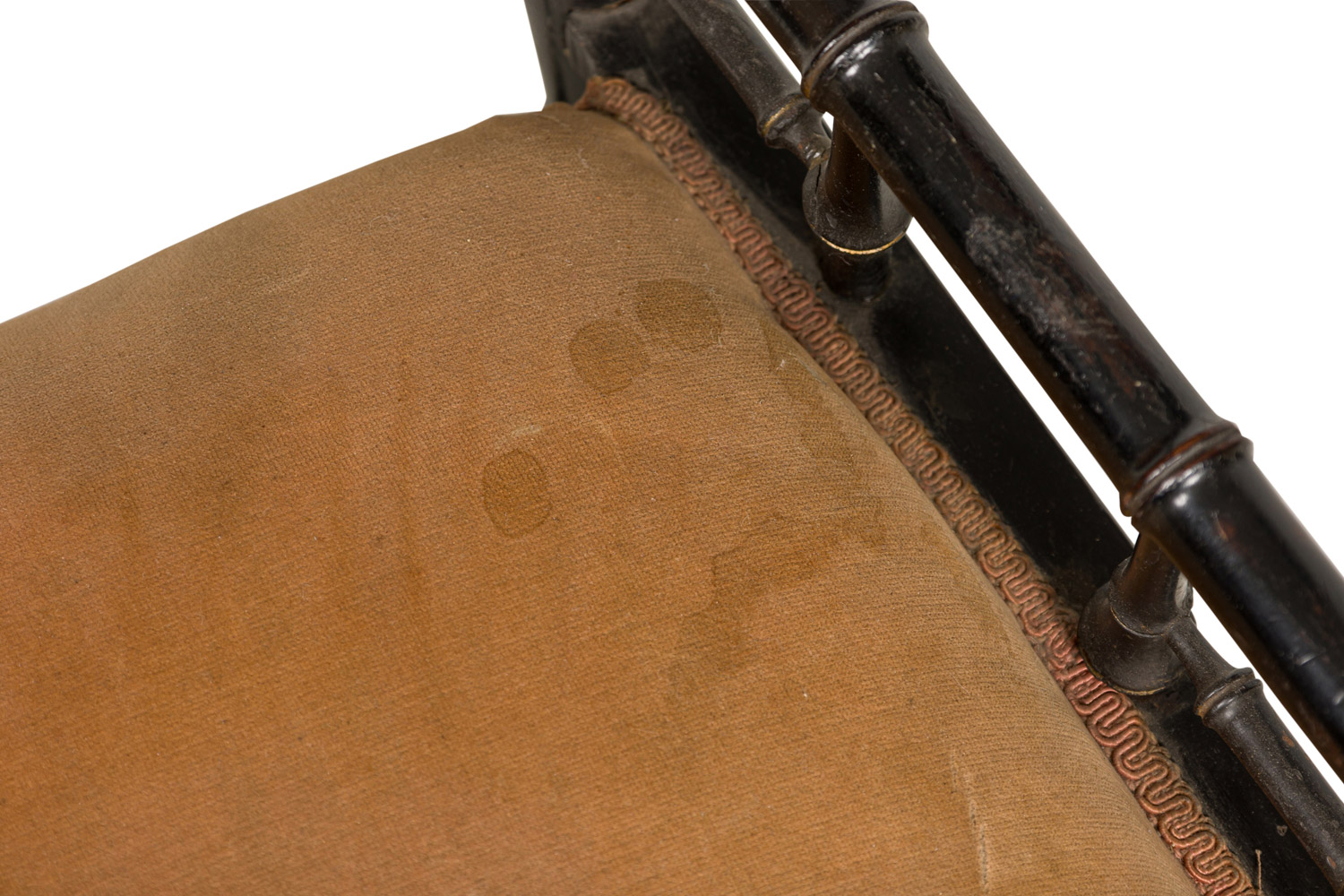 Style: American Materials & Techniques: Bamboo, ebonized, velvet Category: Seating Good; Wear consistent with age and use