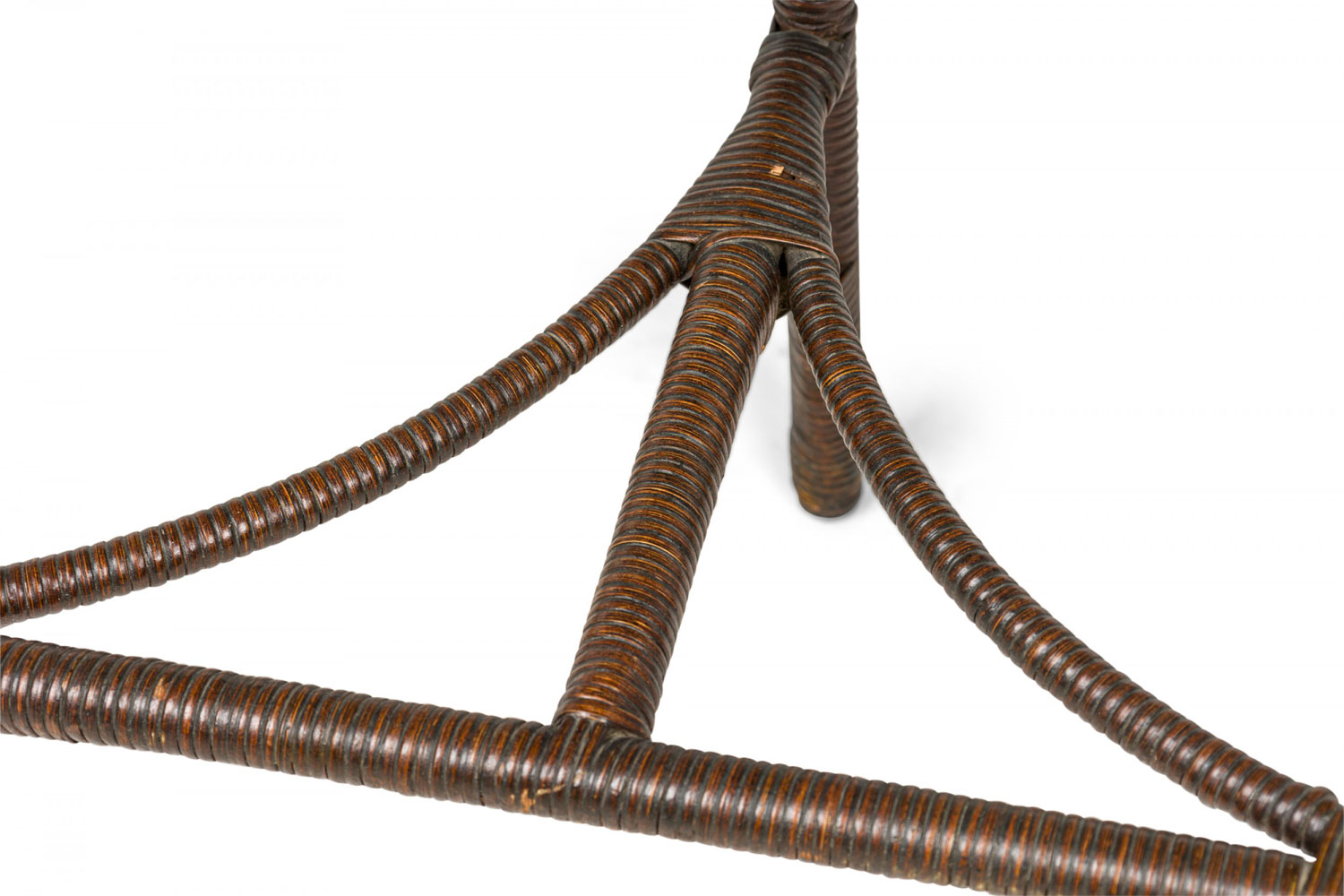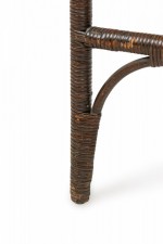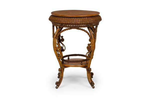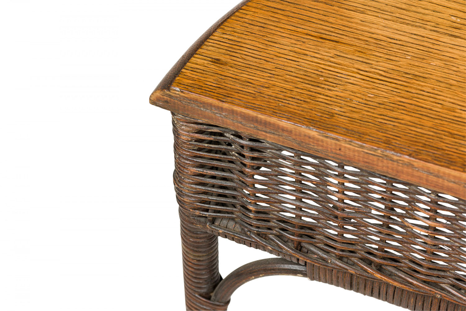 Style: Wicker Materials & Techniques: Oak, wicker, wood Category: Tables, Dining Room Condition: Some losses on top edge. Good; Minor losses
