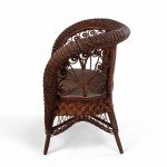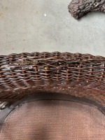 Style: Wicker Materials & Techniques: Natural, wicker, wood, woven Category: Seating, Wicker Condition: Damage and repairs to top back crest