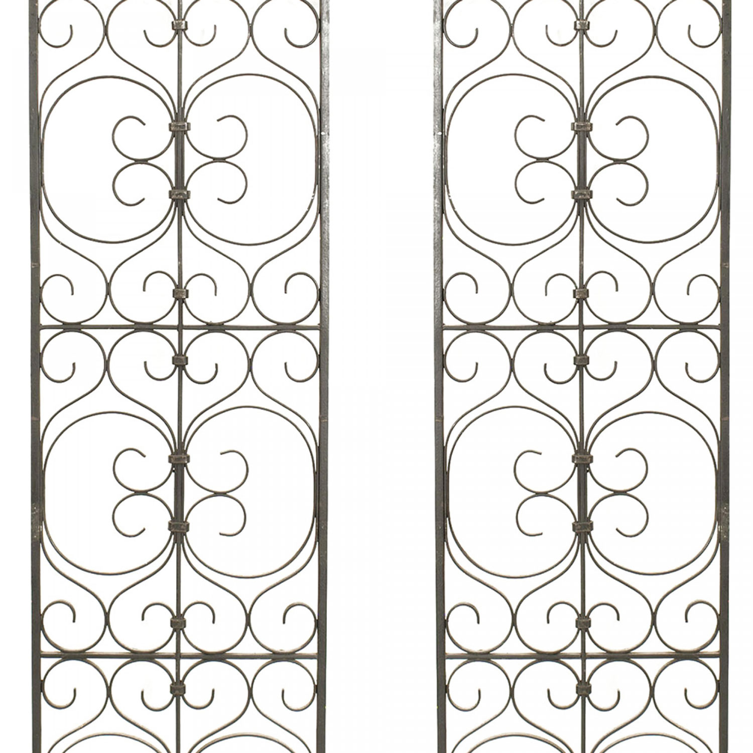 PAIR of American Victorian style black wrought iron filigree scroll design gates with each having 8 panels (PRICED AS PAIR).