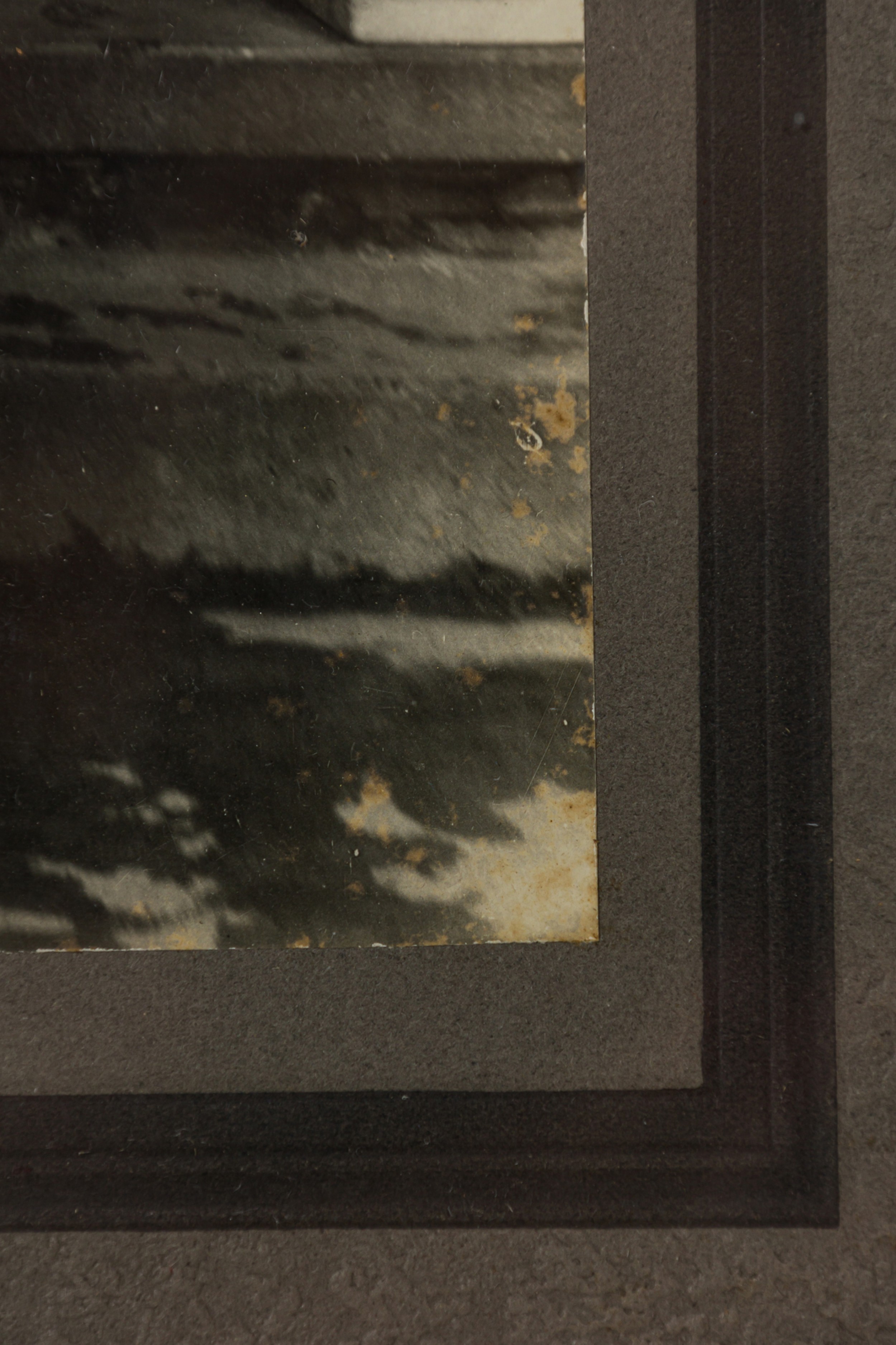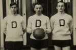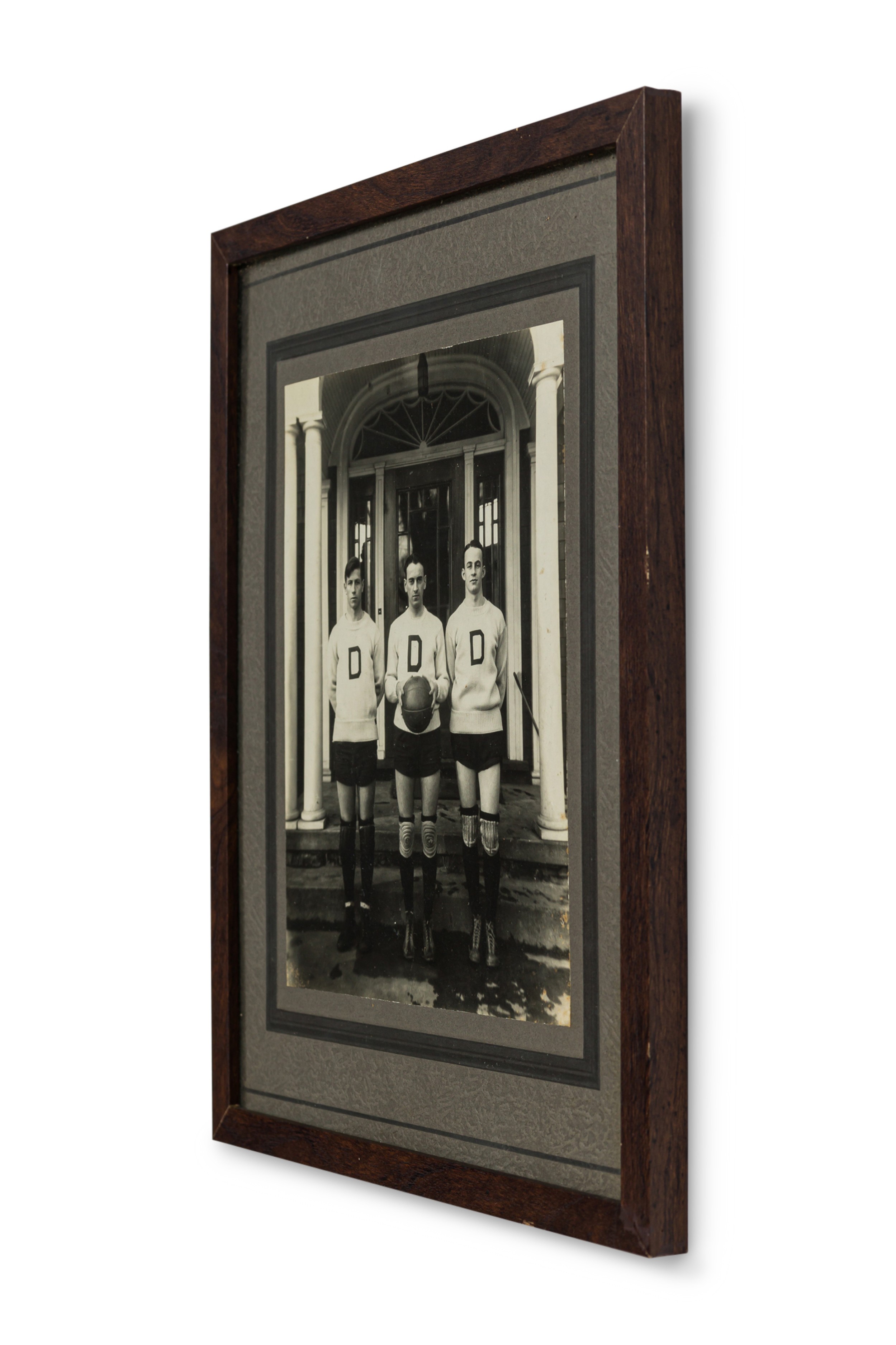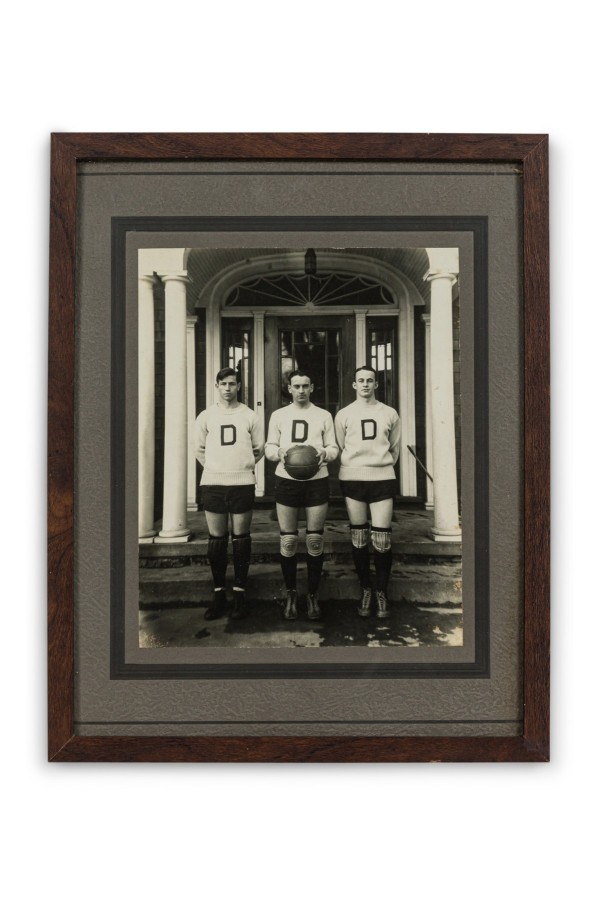 American Vintage black and white photograph of a Deerfield collegiate basketball team in a grey textured mat and mahogany frame