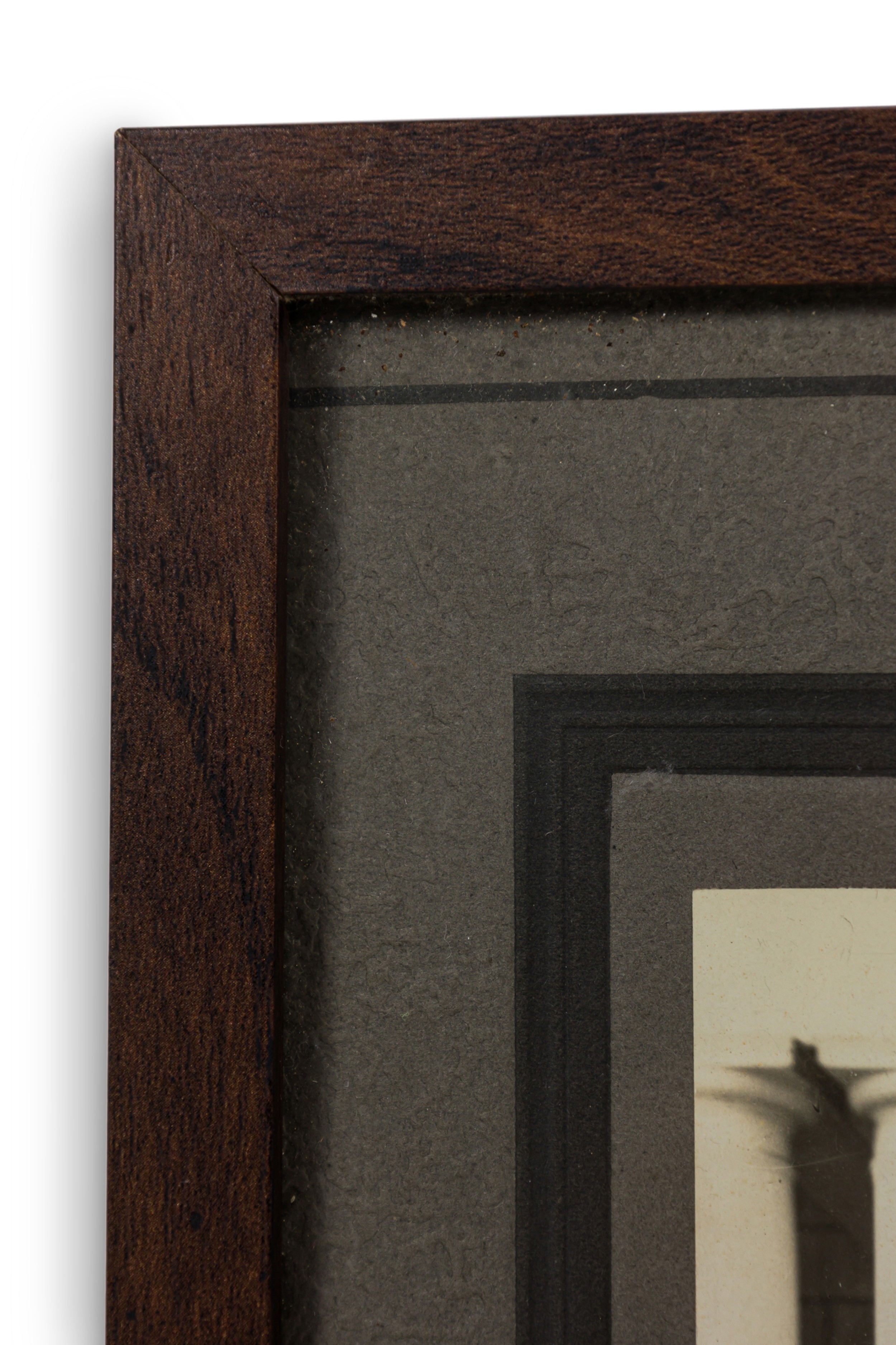 American Vintage black and white photograph of a Deerfield collegiate basketball team in a grey textured mat and mahogany frame.