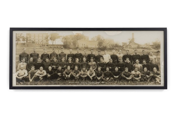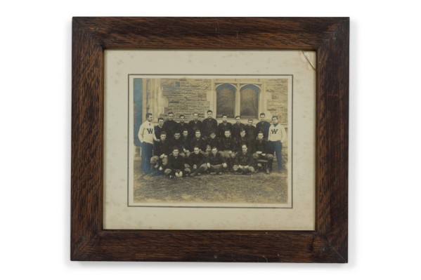 American Vintage black and white photograph from the 1922 William Jewell College football team in a black frame.