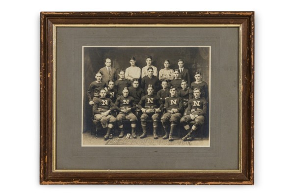 American Vintage black and white photograph from the 1922 William Jewell College football team in a black frame
