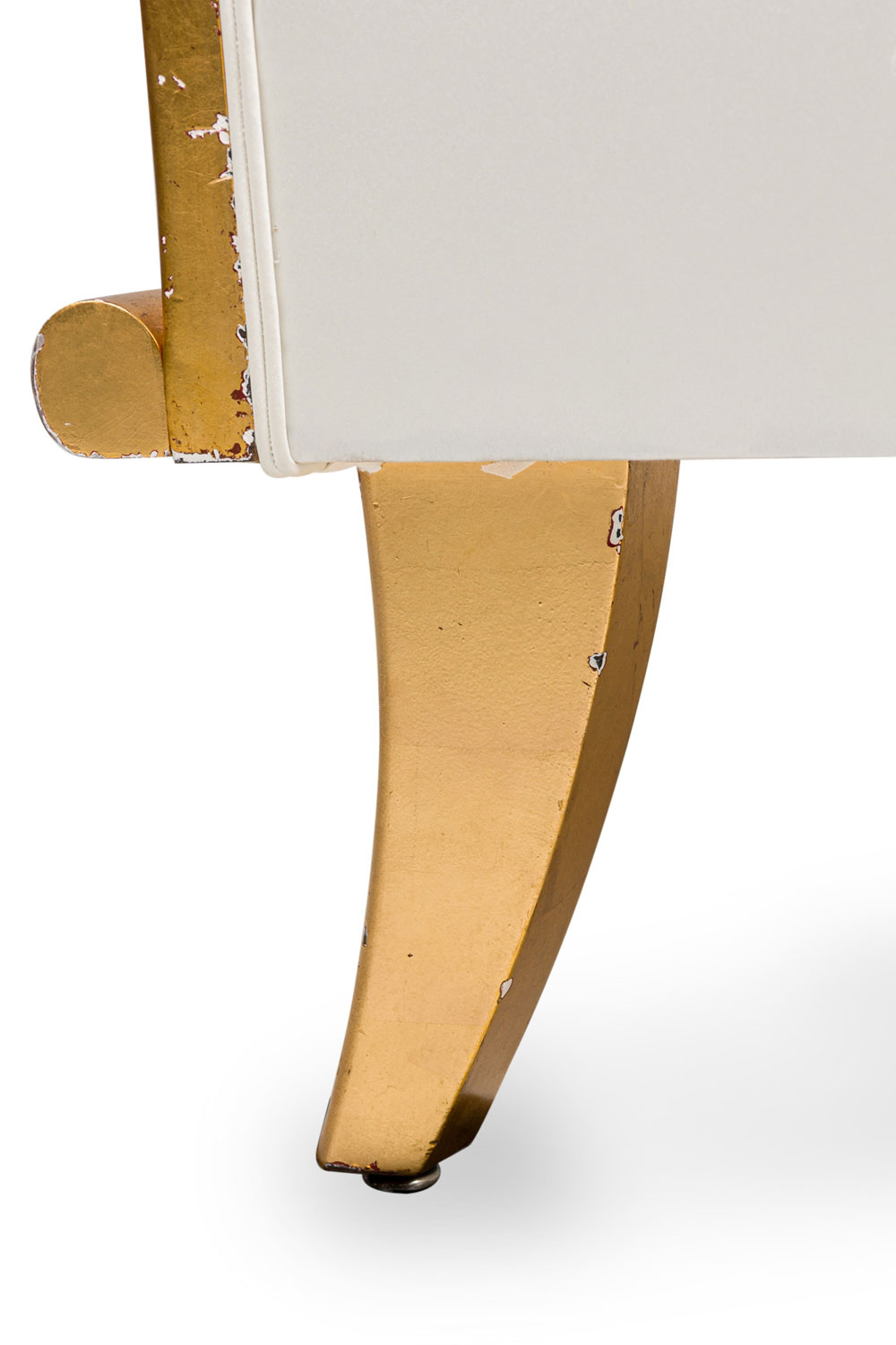 Style: Art Deco Materials & Techniques: Tufted Category: Seating Condition: Some small chips to the gilt throughout