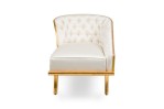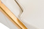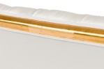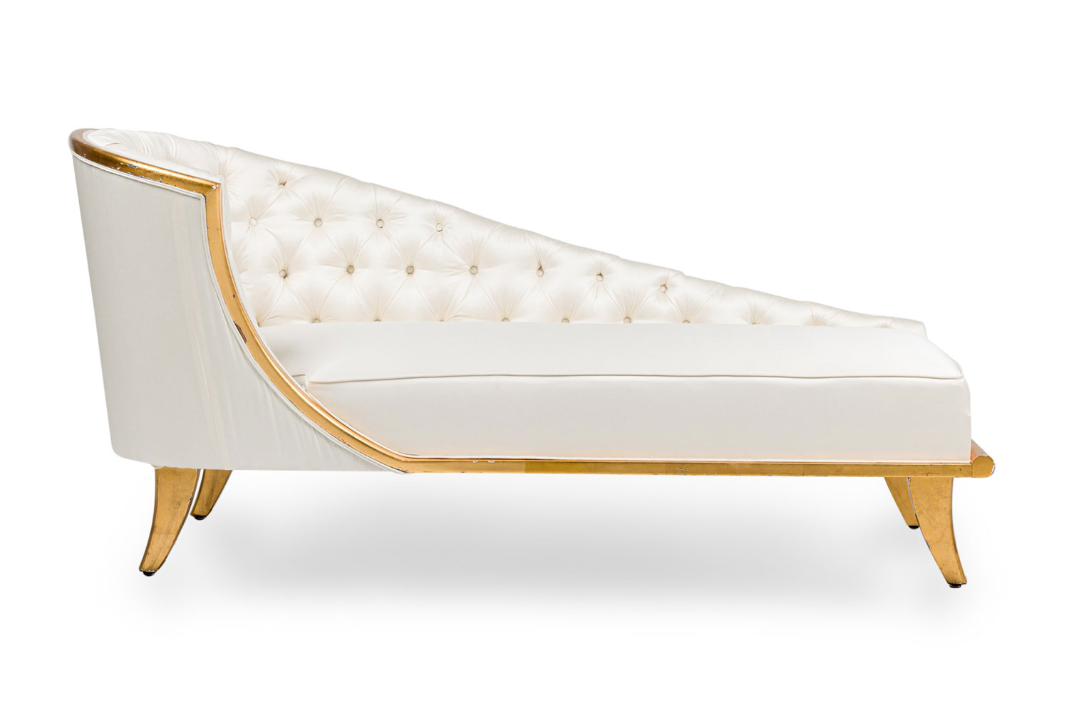 French Art Deco style champagne colored tufted recamier with curved side and back having a giltwood frame with a single inset cushion (modern copy of: ANDRE ARBUS)