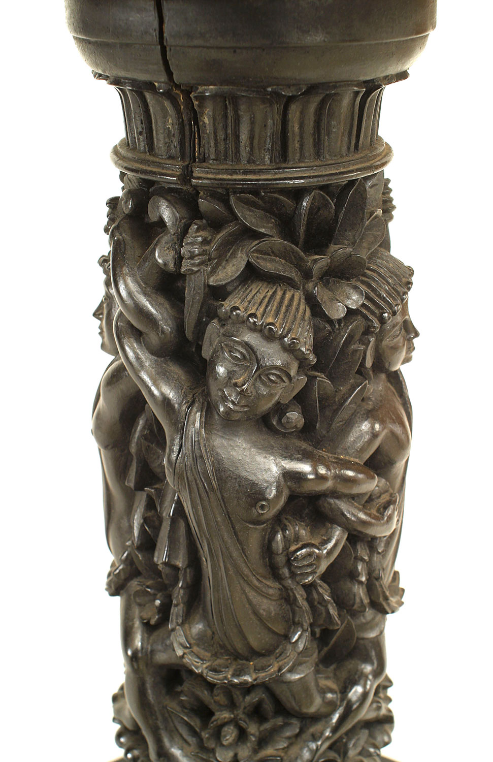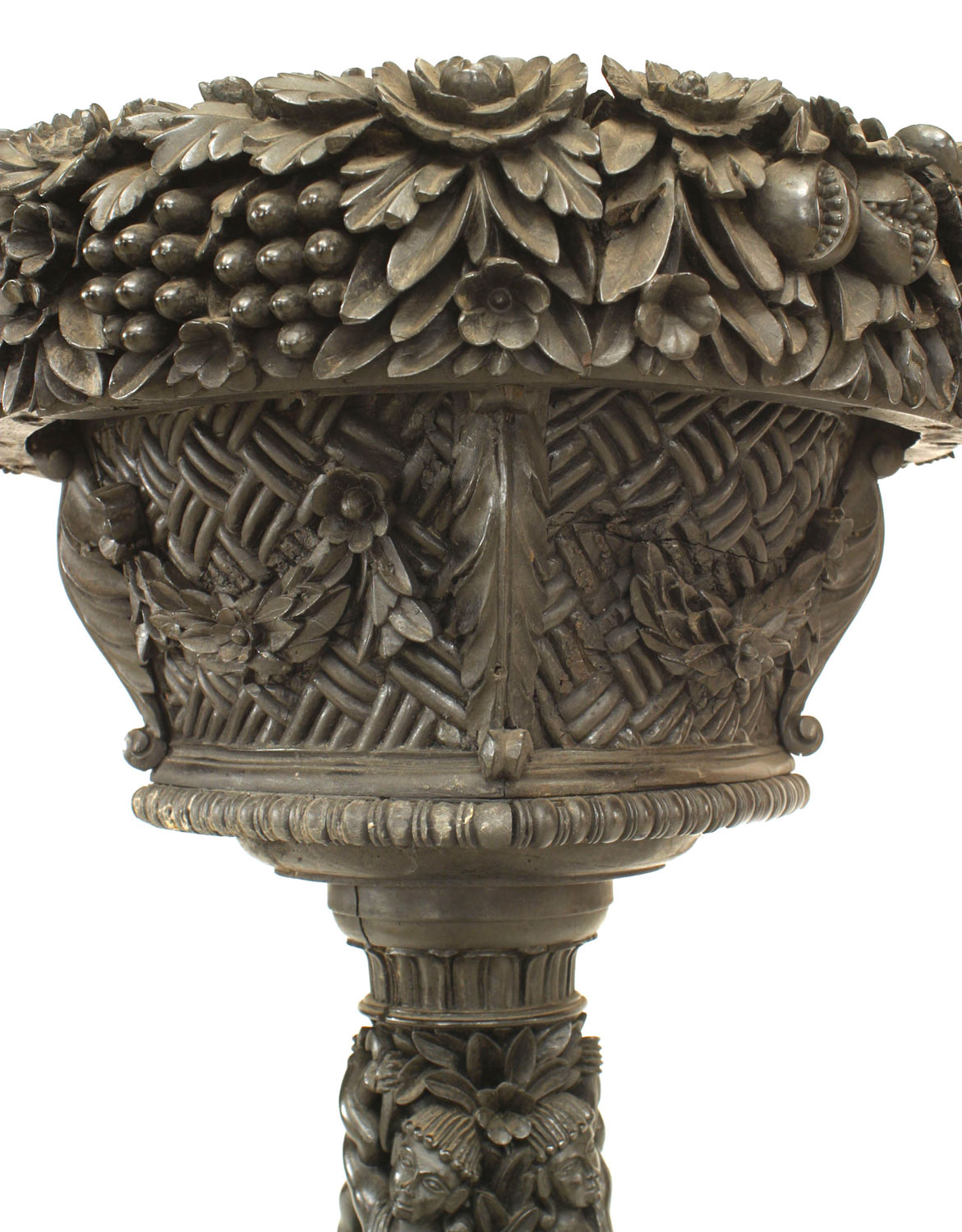 English Anglo Indian floral carved ebony fernery with circular top and pedestal base. (19th Cent)