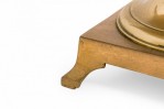 Antique Russian samovar with a brass plated etched metal exterior and removable top, resting on a square four footed base.
