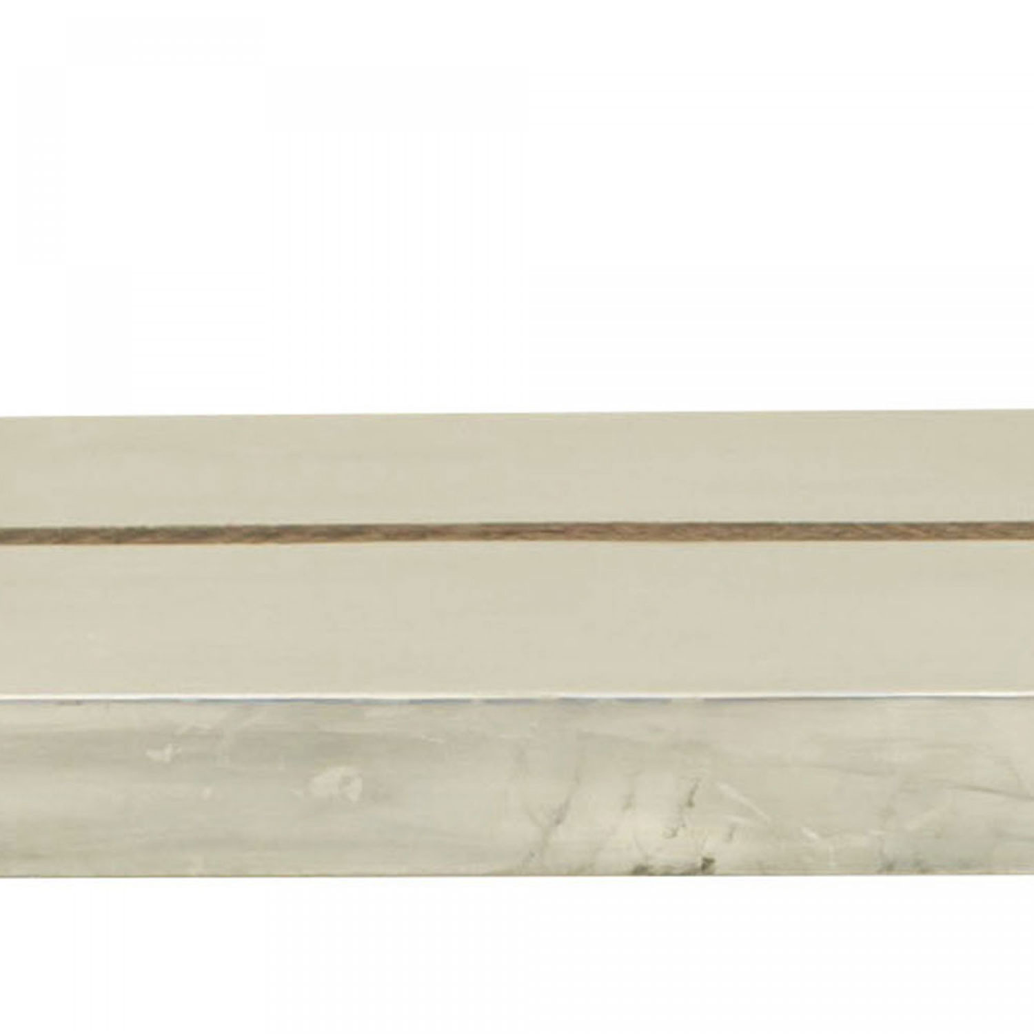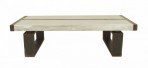 Art Deco Constructivist-style rectangular coffee table with stained oak sides and a top with a center strip separating two metal panels and two open pedestal base sides.