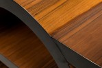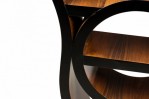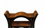 Art Deco French high gloss rosewood veneer console table / etagere crafted in a cut-out "U" shape supporting a circular form with a centered shelf all with a black enameled border and resting on a concave rectangular base.