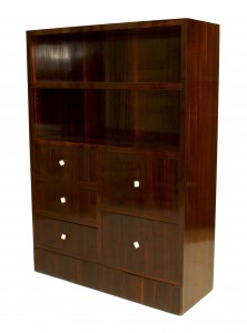Style: Art Deco Materials & Techniques: Rosewood, veneer, wood Category: Cabinets & Case Goods Condition: A small chip to the veneer at the top Good; Wear consistent with age and use