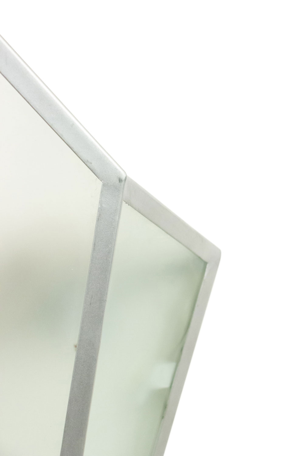 4 Art Deco-Style wall sconces with 3 geometric shaped frosted glass panels set in a silver painted metal frame. (PRICED EACH)