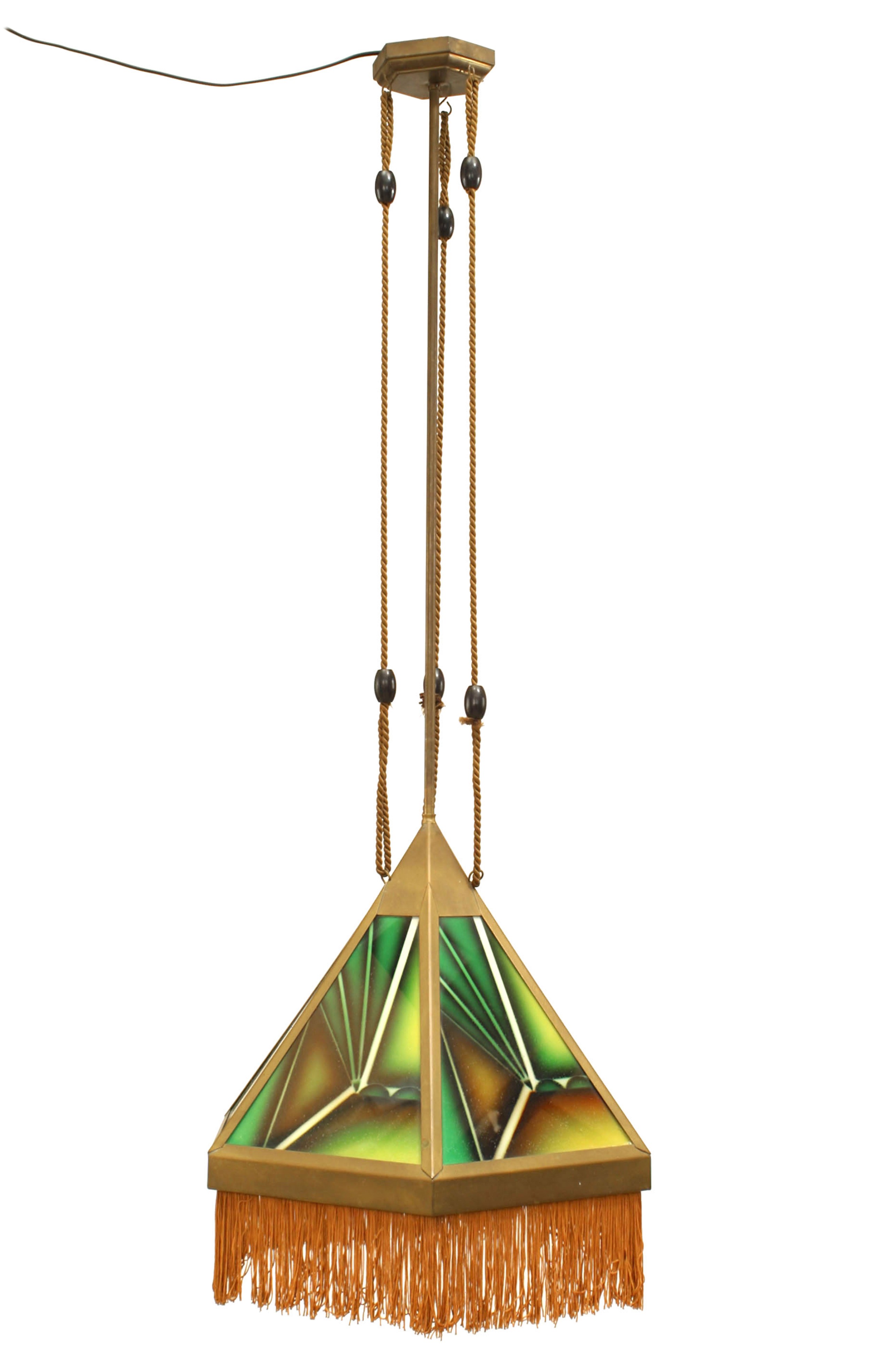 Style: Art Deco Materials & Techniques: Brass, fringe, glass, rope Category: Lighting