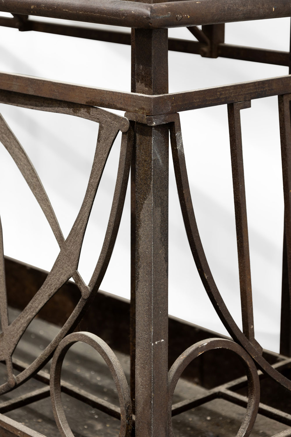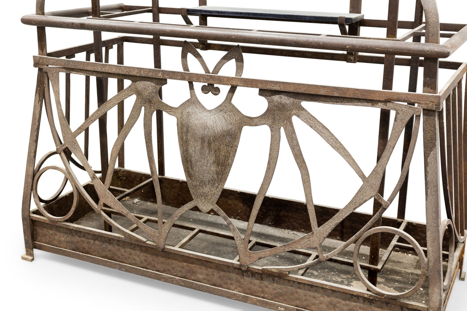 Style: Art Deco Materials & Techniques: Iron, pediment, steel Category: Stands/Racks