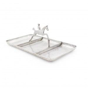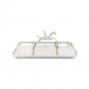 American Art Deco pewter rectangular three section ashtray with horse and rider handle.