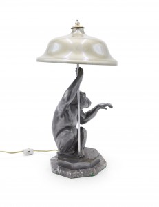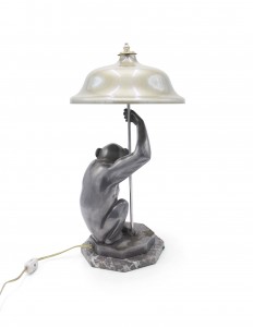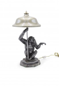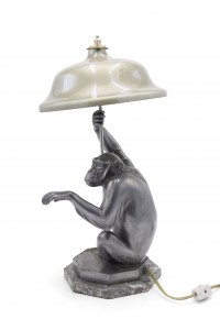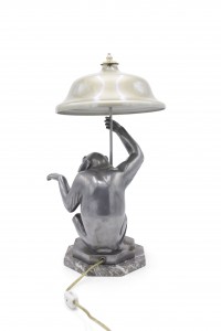 Art Deco Pewter Monkey Table Lamp
