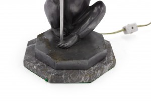 Art Deco style pewter table lamp of seated monkey on octagonal marble base..