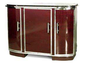 French Art Deco red lacquered and chrome trimmed sideboard with black marble top.