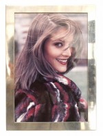 Art Deco-style sterling silver simple rectangular easel picture frame with brown velvet backing..