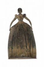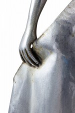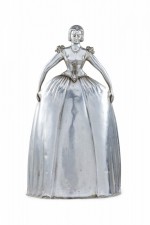 Art Deco silver plated metal figure of woman in dress (fire screen).