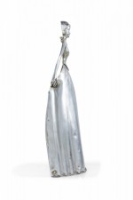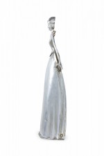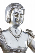 Art Deco silver plated metal figure of woman in dress (fire screen)