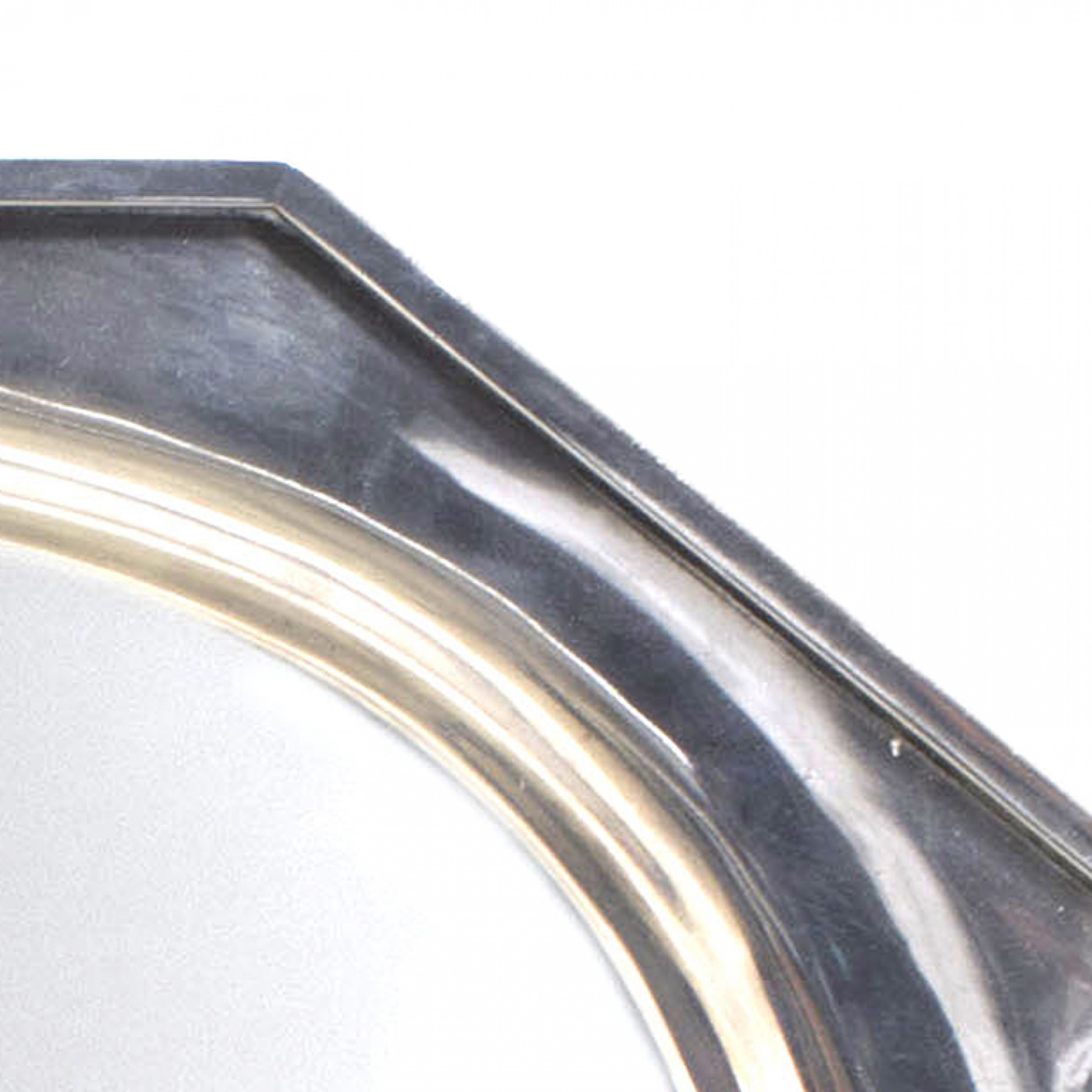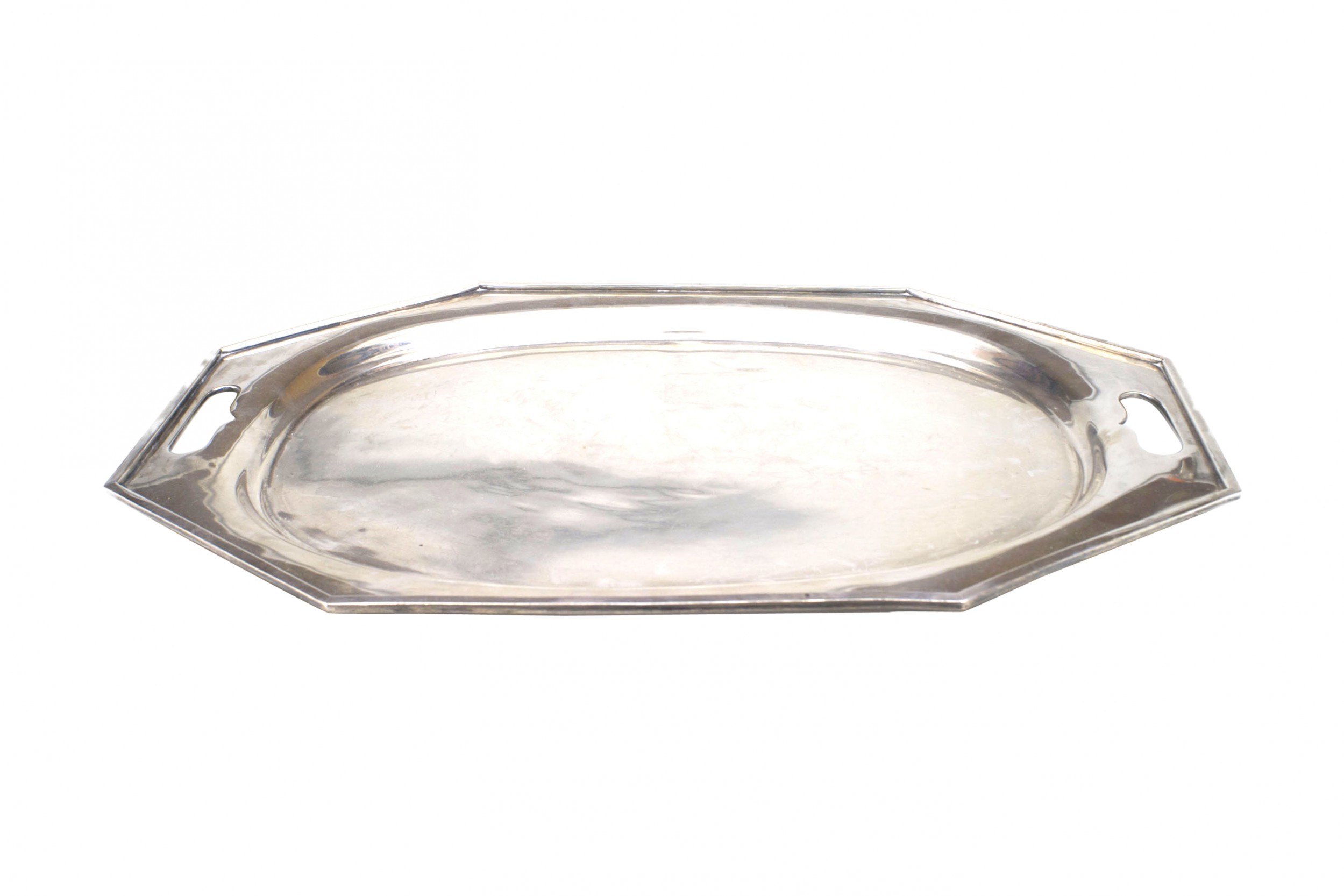 Art Deco (possibly English) sterling silver rectangular 8-sided tray with inside handles.