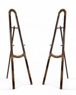 2 Art Nouveau style mahogany and gilt floral carved easel stands with rounded top. (2-PRICED EACH)