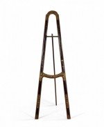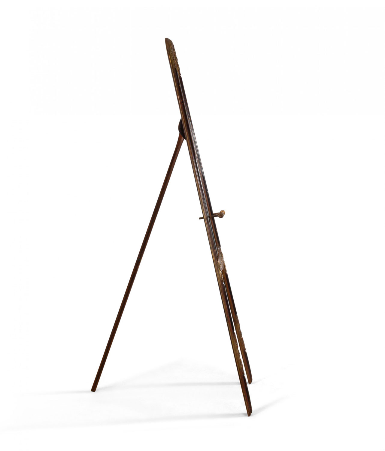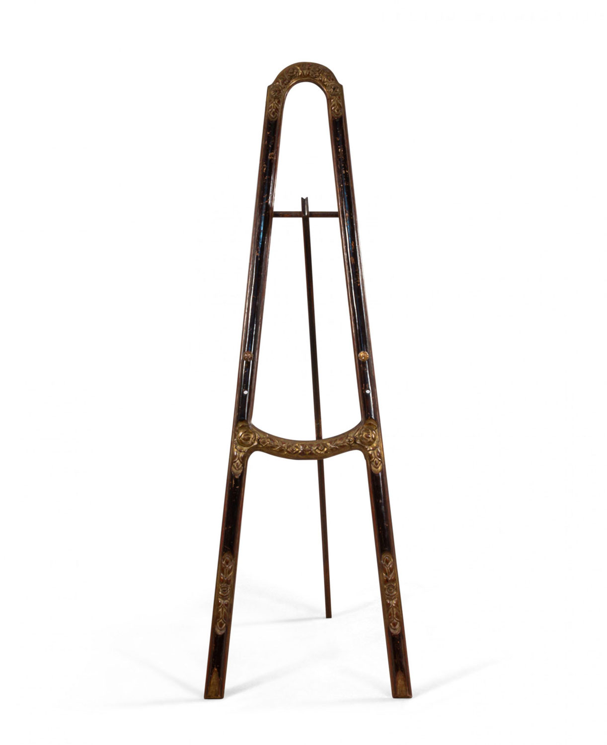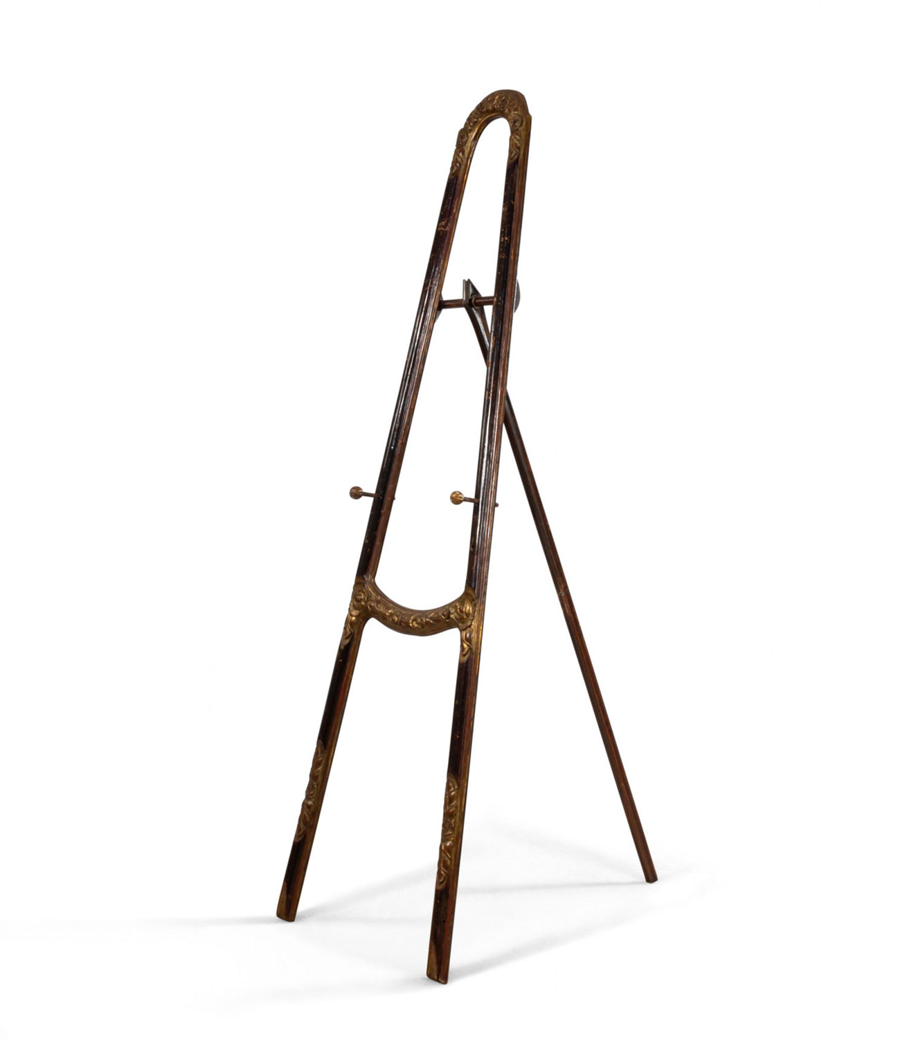 2 Art Nouveau style mahogany and gilt floral carved easel stands with rounded top. (2-PRICED EACH).